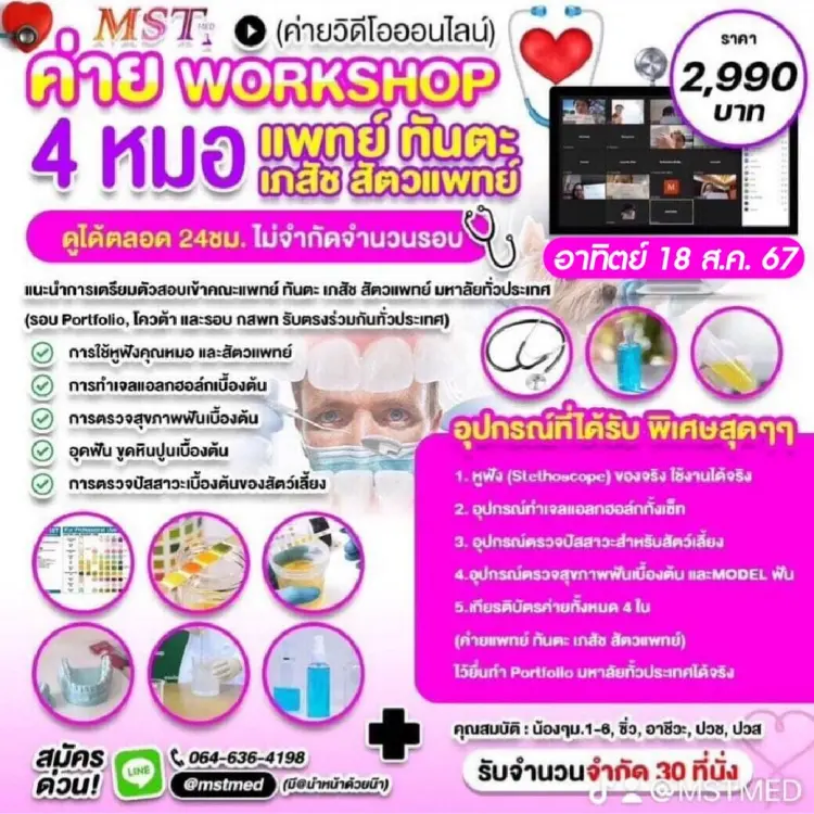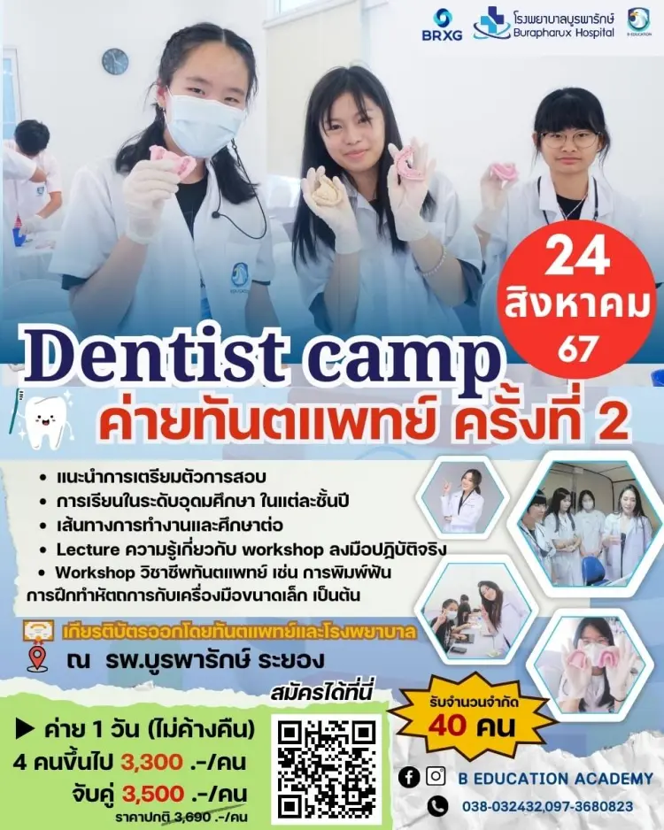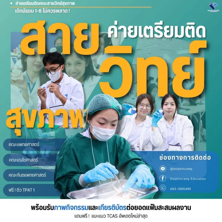 EZ Webmaster July 25, 2024 EZ Webmaster July 25, 2024 มัดรวมค่ายสายวิทย์สุขภาพ ที่ไม่ควรพลาด! มัดรวมค่ายกิจกรรมสำหรับน้องๆนักล่าฝัน พลาดไม่ได้! สำหรับใครที่กำลังสนใจอยากศึกษาต่อในคณะสายวิทย์สุขภาพ และอยากมีผลงานใส่ Portfolio วันนี้ทาง Eduzones ได้รวบรวมค่ายกิจกรรมประจำเดือนสิงหาคม 2567 ที่ครอบคลุมคณะทางสายวิทย์สุขภาพจำนวนมาก ไม่ว่าจะเป็นแพทย์ ทันตะ เภสัช สัตวแพทย์ เทคนิคการแพทย์ กายภาพบำบัด รวมถึงค่ายสำหรับน้องๆที่ใฝ่ฝันอยากเป็นนักจิตวิทยา สำหรับรอบเดือนสิงหาคมนี้จะมีค่ายไหนน่าสนใจกันบ้าง ไปดูกันเลย… รวมค่ายสายวิทย์สุขภาพ ที่ไม่ควรพลาด! 1.ค่าย WORKSHOP 4 หมอ สนใจสมัครคลิกที่นี่ ค่าย WORKSHOP 4 หมอ (ค่ายวิดีโอออนไลน์) ดูได้ตลอด24ชม. ไม่จำกัดจำนวนรอบ ครอบคลุม 4 หมอ ได้แก่ แพทย์ ทันตะ เภสัชและสัตวแพทย์ ที่จะมาแนะนำการเตรียมตัวสอบเข้าในมหาลัยทั่วประเทศ (รอบ Portfolio, โค้วตาและรอบ กสพท) โดยน้องๆจะได้รับเกียรติบัตรทั้งหมด 4 ใบครบทั้ง 4 หมอ! ไว้สำหรับใส่ Portfolio วันจัดกิจกรรม : 18 สิงหาคม 2567 วันปิดรับสมัคร : 16 สิงหาคม 2567 ค่าใช้จ่าย : 2,990 บาท (จ่ายตอนสมัคร) คุณสมบัติ : ม.1-ม.6/ปวช./ปวส./เด็กซิ่ว/บุคคลทั่วไป (ปีการศึกษา 2567) . 2.ค่ายเตรียมติดสายวิทย์สุขภาพ (แพทย์ เภสัช ทันตะ) สนใจสมัครคลิกที่นี่ “ติว Workshop ค้นหาตัวตน สำรวจคณะในฝัน” ครบจบใน Dolphincamp Education ค่ายที่จะพาน้องๆมาติวครบจบทั้ง 3 คณะ ทั้งคณะแพทยศาสตร์ คณะทันตแพทย์ศาสตร์ และคณะเภสัชศาสตร์ รวมทั้งติวสอบ TPAT 1 และแนวแนว TCAS ล่าสุดแบบละเอียด พิเศษสุด! มีเสื้อกาวน์ให้ใส่ฟรีตลอดกิจกรรม สานฝันอาชีพหมอในอนาคต วันจัดกิจกรรม : 17 สิงหาคม 2567 วันปิดรับสมัคร : 16 สิงหาคม 2567 ค่าใช้จ่าย : 2,290-2,590 บาท (จ่ายตอนสมัคร) สถานที่ : โรงเเรมรัตนชล จังหวัดชลบุรี คุณสมบัติ : ม.1-ม.6 (ปีการศึกษา 2567) . 3.ค่ายทันตแพทย์ Dental floss workshop สนใจสมัครคลิกที่นี่ ค่ายทันตแพทย์ออนไลน์ ที่จะพาน้องๆไปเรียนรู้กับการควบคุมคราบจุลินทรีย์ ศึกษาโรคในช่องปากและได้เข้าร่วม Workshop ขัดฟัน พร้อมทั้งยังได้รับคำแนะนำโดยทันตแพทย์ผู้เชี่ยวชาญ วันจัดกิจกรรม : 25 สิงหาคม 2567 วันปิดรับสมัคร : 23 สิงหาคม 2567 ค่าใช้จ่าย : 1,500 บาท (จ่ายตอนสมัคร) คุณสมบัติ : ม.1-ม.6/ปวช./ปวส./เด็กซิ่ว/บุคคลทั่วไป (ปีการศึกษา 2567) . 4.ค่ายทันตแพทย์ ครั้งที่ 2 สนใจสมัครคลิกที่นี่ ค่ายทันตแพทย์ เรียนรู้เส้นทางแต่ละวิชาชีพ พร้อม Workshop สุดพิเศษให้น้องๆได้ลงมือปฏิบัติจริง พบกับแพทย์ผู้เชี่ยวชาญโดยเฉพาะที่จะมาแนะนำการเตรียมตัวสอบเข้า เส้นทางการทำงานและการศึกษาต่อ นอกจากนี้ ยังจะได้เข้าร่วม Workshop วิชาชีพทันตแพทย์ เช่น การพิมพ์ฟัน การฝึกทำหัตถการกับเครื่องมือขนาดเล็ก เป็นต้น วันจัดกิจกรรม : 24 สิง