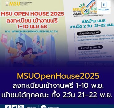 Blogกิจกรรมนักเรียน ลงทะเบียนเข้าร่วมงาน MSUOpenHouse2025 ได้แล้ววันนี้ 1–10 พ.ย. 68 เท่านั้น ข้าชมได้ทุกคณะ ทั้ง 2 วัน (21–22 พ.ย. 68) EZ Webmaster November 8, 2025 📣 ด่วนที่สุด! #DEK69 ห้ามพลาดลงทะเบียนเข้าร่วมงาน 🏡 #MSUOpenHouse2025 ได้แล้ววันนี้ 🎉เปิดให้ลงทะเบียนระหว่างวันที่ 1 – 10 พฤศจิกายน 2568 เท่านั้น! 🎓 รายละเอียดสำคัญที่ควรรู้✅…