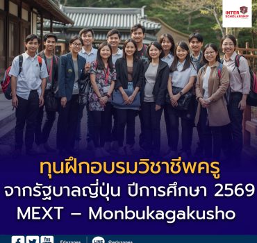 Blogครู-อาจารย์ทุนดีดี เปิดรับสมัคร “ทุนฝึกอบรมวิชาชีพครู” จากรัฐบาลญี่ปุ่น ปีการศึกษา 2569 EZ Webmaster December 26, 2025 📣 เปิดรับสมัคร “ทุนฝึกอบรมวิชาชีพครู” จากรัฐบาลญี่ปุ่น ปีการศึกษา 2569โอกาสสำคัญสำหรับ ครูไทย ที่ต้องการพัฒนาศักยภาพการสอนพร้อมเปิดประสบการณ์ด้านการศึกษาในระดับนานาชาติ 🇯🇵✈️ สถานเอกอัครราชทูตญี่ปุ่นประจำประเทศไทยประกาศเปิดรับสมัคร ทุนการศึกษารัฐบาลญี่ปุ่น (MEXT – Monbukagakusho)ประเภท ทุนฝึกอบรมวิชาชีพครู (Teacher Training Students)เพื่อส่งครูไทยเข้ารับการฝึกอบรมและศึกษาดูงานด้านการศึกษาณ…