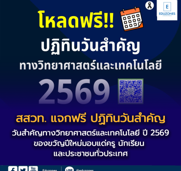 สสวท. แจกฟรี ปฏิทินวันสำคัญทางวิทยาศาสตร์และเทคโนโลยี ปี 2569 ของขวัญปีใหม่มอบแด่ครู นักเรียน และประชาชนทั่วประเทศ EZ Webmaster December 26, 2025 สสวท. แจกฟรี ปฏิทินวันสำคัญทางวิทยาศาสตร์และเทคโนโลยี ปี 2569 ของขวัญปีใหม่มอบแด่ครู นักเรียน และประชาชนทั่วประเทศ…