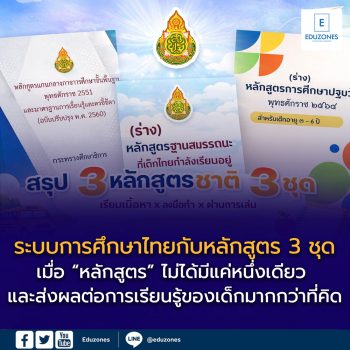 Blogข่าวเด่นครู-อาจารย์นักเรียน สรุป 3 หลักสูตรชาติ 3 ชุด ที่เด็กไทยกำลังเรียนอยู่ เมื่อ “หลักสูตร” ไม่ได้มีแค่หนึ่งเดียว และส่งผลต่อการเรียนรู้ของเด็กมากกว่าที่คิด EZ Webmaster January 27, 2026 สรุป 3 หลักสูตรชาติ 3 ชุด ที่เด็กไทยกำลังเรียนอยู่ เมื่อ “หลักสูตร” ไม่ได้มีแค่หนึ่งเดียว และส่งผลต่อการเรียนรู้ของเด็กมากกว่าที่คิด “หลักสูตร” คือกรอบสำคัญที่กำหนดประสบการณ์การเรียนรู้ของเด็กในแต่ละวัน ตั้งแต่ว่าเด็กจะได้เรียนอะไร เรียนมากน้อยแค่ไหน เรียนด้วยวิธีใด ไปจนถึงการถูกวัดและประเมินผลอย่างไร หลักสูตรจึงไม่ใช่แค่เอกสารเชิงนโยบาย แต่คือสิ่งที่กำหนดทิศทางการเติบโตของเด็กทั้งประเทศ…