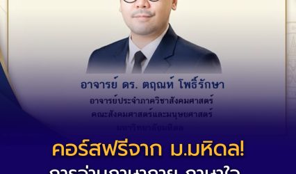 Blogนักศึกษานักเรียน คอร์สฟรีจากมหาวิทยาลัยมหิดล “การอ่านภาษากาย ภาษาใจ (Body Language as a Mind Reading)” EZ Webmaster February 8, 2026 คอร์สฟรีจากมหาวิทยาลัยมหิดล “การอ่านภาษากาย ภาษาใจ (Body Language as a Mind Reading)” มหาวิทยาลัยมหิดล เปิดคอร์สออนไลน์ เรียนฟรี ผ่านแพลตฟอร์ม MUx (Mahidol University…