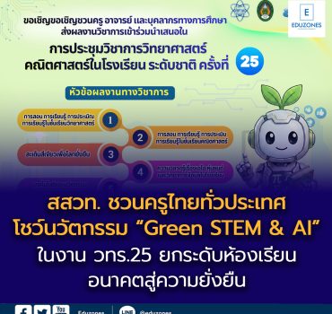 Blogครู-อาจารย์นักเรียน สสวท. ชวนครูไทยทั่วประเทศโชว์นวัตกรรม “Green STEM & AI” ในงาน วทร.25 ยกระดับห้องเรียนอนาคตสู่ความยั่งยืน EZ Webmaster February 26, 2026 สถาบันส่งเสริมการสอนวิทยาศาสตร์และเทคโนโลยี (สสวท.) จับมือมหาวิทยาลัยราชภัฏราชนครินทร์ (มรร.) และสมาคมครูวิทยาศาสตร์ คณิตศาสตร์และเทคโนโลยีแห่งประเทศไทย (สวคท.) ขอเชิญชวนครู อาจารย์ และบุคลากรทางการศึกษาทั่วประเทศ ส่งผลงานวิชาการเข้าร่วมนำเสนอในงาน “การประชุมวิชาการวิทยาศาสตร์ คณิตศาสตร์ในโรงเรียน ระดับชาติ ครั้งที่ 25 (วทร.25)” ภายใต้แนวคิด “สะเต็มศึกษาสีเขียวเพื่อโลกที่ยั่งยืน ผ่านการบูรณาการและนวัตกรรม (Green STEM…