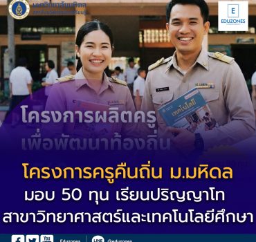 โครงการครูคืนถิ่น ม.มหิดล ปีการศึกษา 2569 มอบ 50 ทุน เรียนปริญญาโท สาขาวิทยาศาสตร์และเทคโนโลยีศึกษา EZ WebmasterFebruary 1, 2026 📢 โครงการครูคืนถิ่น ม.มหิดล ปีการศึกษา 2569 มอบ 50 ทุน เรียนปริญญาโท สาขาวิทยาศาสตร์และเทคโนโลยีศึกษา มหาวิทยาลัยมหิดล เปิดรับสมัคร ทุนโครงการผลิตครูเพื่อพัฒนาท้องถิ่นระดับปริญญาโท ปีการศึกษา 2569 จำนวน 50 ทุน…