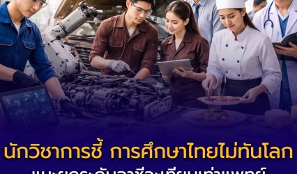 Blogครู-อาจารย์นักศึกษา นักวิชาการชี้ การศึกษาไทยไม่ทันโลก แนะยกระดับอาชีวะเทียบเท่าแพทย์–วิศวกร รับมือโลกอาชีพเปลี่ยนเร็ว EZ Webmaster February 8, 2026 นักวิชาการชี้ การศึกษาไทยไม่ทันโลก แนะยกระดับอาชีวะเทียบเท่าแพทย์–วิศวกร รับมือโลกอาชีพเปลี่ยนเร็ว นักวิชาการด้านการศึกษาเตือนว่า ระบบการศึกษาไทยกำลังเผชิญความท้าทายครั้งใหญ่ เมื่อ ใบปริญญามีคุณค่าน้อยลงกว่าทักษะ ความสามารถ และการปรับตัว ขณะที่งานวิจัยชี้ว่า คนรุ่นใหม่มีแนวโน้มต้องเปลี่ยนอาชีพอย่างน้อย 3–4 ครั้งตลอดชีวิตการทำงาน หากระบบการศึกษาไม่สามารถเตรียมผู้เรียนให้พร้อมสำหรับ การเรียนรู้ตลอดชีวิต (Lifelong Learning)…