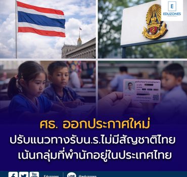 Blogข่าวเด่นครู-อาจารย์นักเรียน ศธ.ปรับประกาศใหม่ รับนักเรียนไม่มีสัญชาติ เน้นกลุ่ม “พำนักในไทย” ให้สอดคล้องมติ ครม. ปี 2548 และหลักสากล EZ Webmaster February 27, 2026 ศธ.ปรับประกาศใหม่ รับนักเรียนไม่มีสัญชาติ เน้นกลุ่ม “พำนักในไทย” ให้สอดคล้องมติ ครม. ปี 2548 และหลักสากล กระทรวงศึกษาธิการ (ศธ.) ออกประกาศฉบับใหม่ ปี พ.ศ. 2568 เรื่อง การรับนักเรียน นักศึกษาที่ไม่มีหลักฐานทะเบียนราษฎร…