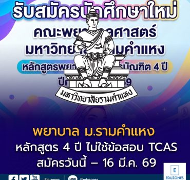 เปิดรับแล้ว! พยาบาล ม.รามคำแหง หลักสูตร 4 ปี จัดสอบเอง ไม่ใช้ข้อสอบกลาง EZ WebmasterFebruary 27, 2026 เปิดรับแล้ว! พยาบาล ม.รามคำแหง หลักสูตร 4 ปี จัดสอบเอง ไม่ใช้ข้อสอบกลาง มหาวิทยาลัยรามคำแหง เปิดรับสมัครนักศึกษาใหม่ หลักสูตรพยาบาลศาสตรบัณฑิต (4 ปี) โดย ไม่ใช้คะแนนสอบ TCAS ผู้สมัครจะต้องผ่านการสอบข้อเขียนและสอบสัมภาษณ์ตามเกณฑ์ของคณะโดยตรง 📅… โควตาแพทย์ จุฬาฯ TCAS69 เปิดเกณฑ์ 3 โครงการใหญ่ รับรวม 83 ที่นั่ง EZ WebmasterFebruary 27, 2026 โควตาแพทย์ จุฬาฯ TCAS69 เปิดเกณฑ์ 3 โครงการใหญ่ รับรวม 83 ที่นั่ง คณะแพทยศาสตร์ จุฬาลงกรณ์มหาวิทยาลัย เปิดรายละเอียดการรับสมัครรอบโควตา TCAS69 ภายใต้ 3 โครงการสำคัญ ได้แก่ โครงการร่วมผลิตแพทย์เพื่อชาวชนบท…