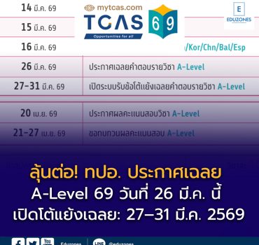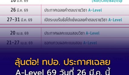 Blogนักเรียนมหาวิทยาลัย ลุ้นต่อ! ทปอ. ประกาศเฉลย A-Level 69 วันที่ 26 มี.ค. นี้ EZ Webmaster March 24, 2026 📢 ลุ้นต่อ! ทปอ. ประกาศเฉลย A-Level 69 วันที่ 26 มี.ค. นี้ โอกาสสำคัญของ #dek69 เช็กคะแนน วางแผน และ “พลิกเกม”…