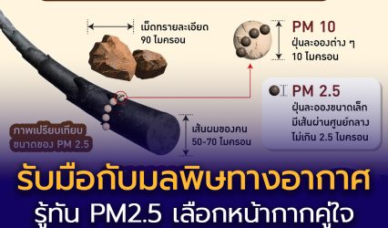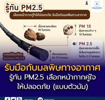 รู้ทัน PM2.5 เลือกหน้ากากคู่ใจ ให้ปลอดภัย (แบบตัวมัม) รับมือกับมลพิษทางอากาศ EZ WebmasterMarch 9, 2026 ท่ามกลางสถานการณ์ที่ฝุ่นจิ๋วเจ้าปัญหาอย่าง PM2.5 ส่งผลกระทบต่อลมหายใจของเราอย่างต่อเนื่อง จนกลายเป็นแขกไม่ได้รับเชิญที่มาหาคนไทยทุกปี “หน้ากากอนามัย” จึงไม่ใช่แค่ไอเทมเสริม แต่คือ “เกราะป้องกัน” ชิ้นสำคัญที่ขาดไม่ได้! สถาบันส่งเสริมการสอนวิทยาศาสตร์และเทคโนโลยี (สสวท.) จะพาทุกคนไปสวมบทนักวิทย์ ส่องหน้ากากแต่ละประเภทว่ามีความลับอะไรซ่อนอยู่ และเลือกใช้อย่างไรให้เป๊ะปัง ปลอดภัยจากมลพิษทางอากาศ รวมถึงโรคร้ายต่าง ๆ ที่มาพร้อมกับ PM2.5 ทำไมต้องกลัวเจ้าฝุ่น PM2.5? ฝุ่น PM2.5 คือฝุ่นที่มีขนาดจิ๋วสุด ๆ ไม่เกิน 2.5 ไมครอน ความร้ายกาจของมันอยู่ที่การแทรกซึมเข้าสู่ระบบทางเดินหายใจไปจนถึงกระแสเลือดได้แบบเนียน ๆ ส่งผลให้ร่างกายเรา…