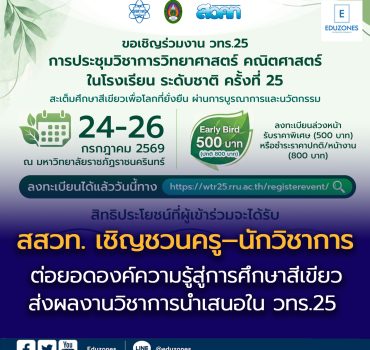 Blogครู-อาจารย์นักเรียน ต่อยอดองค์ความรู้สู่การศึกษาสีเขียว สสวท. เชิญชวนครู–นักวิชาการ ส่งผลงานวิชาการนำเสนอใน วทร.25 EZ Webmaster March 9, 2026 สถาบันส่งเสริมการสอนวิทยาศาสตร์และเทคโนโลยี (สสวท.) ร่วมกับ มหาวิทยาลัยราชภัฏราชนครินทร์ (มรร.) และ สมาคมวิทยาศาสตร์และคณิตศาสตร์ศึกษาแห่งประเทศไทย (สวคท.) ขอเชิญครู นักการศึกษา นักวิชาการ และผู้สนใจ ส่งผลงานและเข้าร่วมการประชุมวิชาการวิทยาศาสตร์ คณิตศาสตร์ในโรงเรียน ระดับชาติ ครั้งที่ 25 (วทร.25) ภายใต้หัวข้อ “สะเต็มศึกษาสีเขียวเพื่อโลกที่ยั่งยืน ผ่านการบูรณาการและนวัตกรรม” จัดระหว่างวันที่ 24–26 กรกฎาคม 2569 ณ มหาวิทยาลัยราชภัฏราชนครินทร์ จังหวัดฉะเชิงเทรา เวทีวิชาการระดับชาติที่มุ่งแลกเปลี่ยนองค์ความรู้ นวัตกรรม…