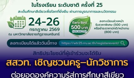 Blogครู-อาจารย์นักเรียน ต่อยอดองค์ความรู้สู่การศึกษาสีเขียว สสวท. เชิญชวนครู–นักวิชาการ ส่งผลงานวิชาการนำเสนอใน วทร.25 EZ Webmaster March 9, 2026 สถาบันส่งเสริมการสอนวิทยาศาสตร์และเทคโนโลยี (สสวท.) ร่วมกับ มหาวิทยาลัยราชภัฏราชนครินทร์ (มรร.) และ สมาคมวิทยาศาสตร์และคณิตศาสตร์ศึกษาแห่งประเทศไทย (สวคท.) ขอเชิญครู นักการศึกษา นักวิชาการ และผู้สนใจ ส่งผลงานและเข้าร่วมการประชุมวิชาการวิทยาศาสตร์ คณิตศาสตร์ในโรงเรียน ระดับชาติ ครั้งที่ 25 (วทร.25) ภายใต้หัวข้อ “สะเต็มศึกษาสีเขียวเพื่อโลกที่ยั่งยืน ผ่านการบูรณาการและนวัตกรรม”…