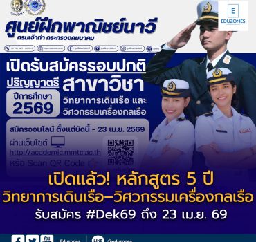 เปิดแล้ว! หลักสูตร 5 ปี “วิทยาการเดินเรือ–วิศวกรรมเครื่องกลเรือ” สถาบันการศึกษาด้านการพาณิชยนาวี (MMTC) รับสมัคร #Dek69 ถึง 23 เม.ย. 69 EZ WebmasterMarch 24, 2026 🚢 เปิดแล้ว! หลักสูตร 5 ปี “วิทยาการเดินเรือ–วิศวกรรมเครื่องกลเรือ” รับสมัคร #Dek69 ถึง 23 เม.ย. 69 อีกหนึ่งโอกาสสำคัญสำหรับน้อง ๆ #Dek69 ที่ใฝ่ฝันอยากทำงานในสายอาชีพด้านการเดินเรือและอุตสาหกรรมทางทะเล ล่าสุด สถาบันการศึกษาด้านการพาณิชยนาวี…