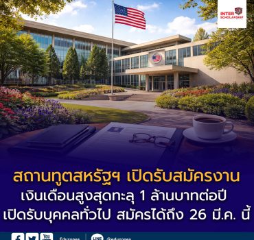 สถานทูตสหรัฐฯ เปิดรับสมัครงาน 2569 เงินเดือนสูงสุดทะลุ 1 ล้านบาทต่อปี เปิดรับบุคคลทั่วไป สมัครได้ถึง 26 มี.ค. นี้ EZ WebmasterMarch 22, 2026 🇺🇸 สถานทูตสหรัฐฯ เปิดรับสมัครงาน 2569 เงินเดือนสูงสุดทะลุ 1 ล้านบาทต่อปี เปิดรับบุคคลทั่วไป สมัครได้ถึง 26 มี.ค. นี้ โอกาสสำคัญสำหรับคนรุ่นใหม่ที่อยากทำงานในองค์กรระดับนานาชาติมาถึงแล้ว เมื่อ สถานเอกอัครราชทูตสหรัฐอเมริกาประจำประเทศไทย ประกาศเปิดรับสมัครบุคลากรหลายตำแหน่ง ประจำปี 2569…