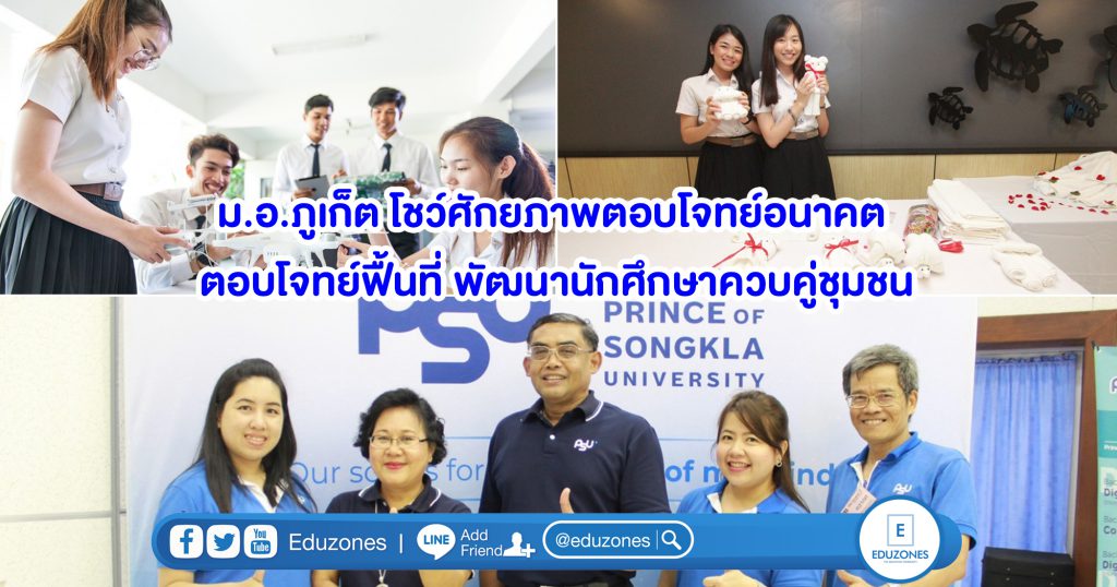 EZ Webmaster May 15, 2019 EZ Webmaster May 15, 2019 ม.อ.ภูเก็ต โชว์ศักยภาพตอบโจทย์อนาคต ตอบโจทย์ฟื้นที่ พัฒนานักศึกษาควบคู่ชุมชน ในยุคของการเปลี่ยนแปลงที่เป็นไปอย่างรวดเร็วในปัจจุบัน คำถามหนึ่งที่เกิดขึ้นกับคนในแวดวงการศึกษาก็คือ สิ่งที่สอนกันในระดับมหาวิทยาลัยนั้นได้ช่วยเตรียมพร้อมบัณฑิตให้สามารถออกไปทำงานตามความต้องการของนายจ้างได้หรือไม่? จะทำอย่างไรให้นักศึกษาที่จบไปพร้อมทำงาน และเป็นที่ต้องการของนายจ้าง หากสรุปจากคำตอบมากมายของคำถามนี้ จะมีจุดที่เหมือนกันก็คือ “ต้องให้นักศึกษามีทักษะที่พร้อมกับการทำงาน นั่นคือได้ทำงานจริง และรู้ปัญหาจริงๆก่อนจบการศึกษา” จังหวัด “ภูเก็ต” เป็นที่รู้จักกันดีในฐานะเมืองท่องเที่ยวที่มีชื่อเสียงในระดับโลก มีสถานที่ท่องเที่ยวทางธรรมชาติที่สวยงาม มีชุมชนที่มีจิตบริการ และมีสิ่งอำนวยความสะดวกที่สามารถรองรับนักท่องเที่ยวจากทั่วโลก อย่างไรก็ตามการสร้างความยั่งยืนให้กับเมืองท่องเที่ยวจะต้องมีการสร้างความรับรู้ในเรื่องที่เกี่ยวข้องให้กับชุมชน โดยปัจจุบันจะเน้นการให้ความรู้ด้านการบริการท่องเที่ยว ภาษา เทคโนโลยีสารสนเทศ การจัดการสิ่งแวดล้อม ซึ่งศาสตร์เหล่านี้ “มหาวิทยาลัยสงขลานครินทร์” ซึ่งมี “วิทยาเขตภูเก็ต” ที่มีการเรียนการสอนที่เน้นสนองการสร้างความเข้มแข็งของเศรษฐกิจและสังคม ของชุมชนภาคใต้ฝั่งอันดามัน เป็นสถาบันการศึกษาที่ตั้งอยู่ในพื้นที่ และวางยุทธศาสตร์ในการมุ่งพัฒนาทรัพยากรมนุษย์ สร้างผลงานวิชาการและนวัตกรรมเพื่อใช้จริงในการแก้ปัญหาและพัฒนาพื้นที่ ซึ่งตรงนี้ถือว่าเป็นสิ่งสำคัญที่ทำให้นักศึกษาของ ม.อ.ภูเก็ต มีทักษะและความพร้อมในการทำงานมากกว่าที่อื่นๆเพราะนอกจากจะได้ทำงานจริงจากปัญหาจริงแล้ว ที่สำคัญคือได้ทำในฟื้นที่ที่ต้องถือว่าเป็นฟื้นที่เศรษฐกิจระดับต้นๆของโลก ผู้ช่วยศาสตราจารย์ ดร.นิวัติ แก้วประดับ อธิการบดีมหาวิทยาลัยสงขลานครินทร์ ซึ่งส่วนสำคัญอย่างยิ่งที่ ม.อ.ภูเก็ต ใช้มาเป็นสิ่งสำคัญในการพัฒนานักศึกษาก็คือ “ชุมชน” เพราะการลงฟิ้นที่ เข้าไปชุมชน นอกจากตัวนักศึกษาจะได้ทำงานจริงแล้ว สิ่งที่สำคัญเลยก็คือนักศึกษาได้เรียนรู้จากปัญหาจริงๆ การเรียนแบบนี้ ที่ไม่ใด้อยู่แต่ในห้องสี่เหลี่ยม จะช่วยเสริมสร้างพัฒนาให้นักศึกษาได้รับความรู้และทักษะที่มากมายที่เค้าจะได้ใช้ในการทำงาน ไม่ว่าจะเป็นการทำงานเป็นทีม แก้คิดวิเคราะห์ การสื่อสาร การค้นคว้า ซึ่งถือว่าเป็นทักษะที่เกี่ยวข้องกับคน ที่ได้รับการยอมรับแล้วว่าจำเป็นมากสำหรับ