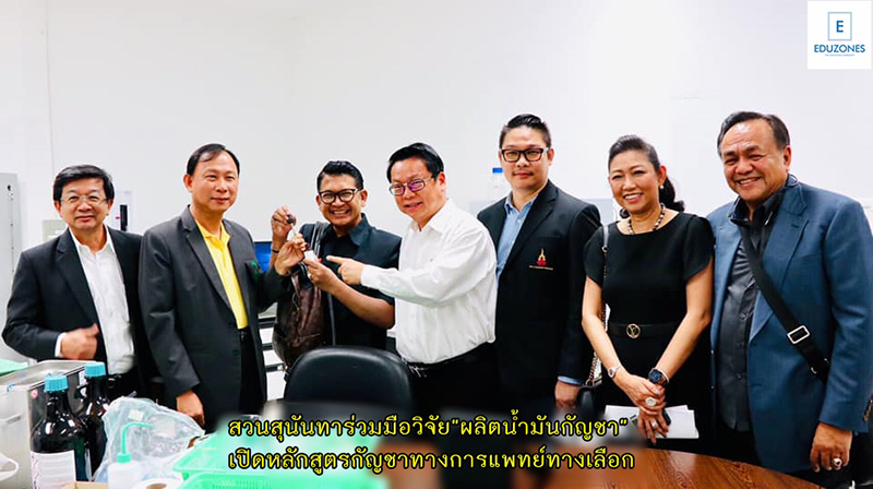 tui sakrapee May 30, 2019 tui sakrapee May 30, 2019 สวนสุนันทาร่วมมือวิจัย”ผลิตน้ำมันกัญชา”เปิดหลักสูตรกัญชาทางการแพทย์ทางเลือก สวนสุนันทาร่วมมือวิจัย ผลิตน้ำมันกัญชา เปิดหลักสูตรกัญชาทางการแพทย์ทางเลือก พร้อมหนุนรัฐบาลประกาศกัญชาเป็นสมุนไพรประจำชาติ นำรายได้เข้าประเทศ รศ.ดร.ฤๅเดช เกิดวิชัย อธิการบดีมหาวิทยาลัยราชภัฏสวนสุนันทา มอบหมายให้ ผศ.ดร.สมเดช รุ่งศรีสวัสดิ์ รองอธิการบดีฝ่ายวิชาการ และรศ.(พิเศษ)ดร.นพ.ธวัชชัย กมลธรรม คณบดีวิทยาลัยสหเวชศาสตร์ พร้อมทีมงานร่วมเจรจาความร่วมมือกับผู้บริหารบริษัท Green Tech จำกัด ผู้เชี่ยวชาญด้านการผลิตน้ำมันกัญชา และผลิตภัณฑ์กัญชาทางการแพทย์ จากสหรัฐอเมริกา และผู้บริหารจากบริษัท TARATERA จำกัด ผู้เชี่ยวชาญการปลูกพืชสมุนไพรด้วยระบบปิด เพื่อเตรียมทำวิจัยและผลิตน้ำมันกัญชาทางการแพทย์ สนับสนุนนโยบายรัฐบาลและความต้องการน้ำมันกัญชาทางการแพทย์เพื่อบำบัด รักษา และบรรเทาอาการแก่ผู้ป่วยในหลายๆ โรค เช่น มะเร็ง อัลไซเมอร์ โรคชัก โรคซึมเศร้า และอื่นๆ รศ.(พิเศษ)ดร.นพ.ธวัชชัย กมลธรรม คณบดีวิทยาลัยสหเวชศาสตร์ อดีตอธิบดีกรมการแพทย์แผนไทย แถลงว่า วิทยาลัยสหเวชศาสตร์ สวนสุนันทา มีความพร้อมมากในเรื่องกัญชา ได้เตรียมการมากว่า 3 ปีแล้ว ทั้งในด้านบุคลากรทางการแพทย์ อาจารย์หมอทั้งแพทย์แผนไทย แพทย์แผนจีน เรามียาสมุนไพรที่มีส่วนผสมกัญชาตามตำหรับยาที่กรมการแพทย์แผนไทยกำหนด มีเครื่องมืออุปกรณ์ในการผลิตยาสมุนไพร มีพื้นที่และสถานที่พร้อมในการจะปลูกกัญชาที่มีการควบคุมและตรวจสอบได้อย่างเข้มงวด มีงานวิจัยรองรับและพร้อมจะดำเนินการวิจัยน้ำมันกัญชาในผู้ป่วยอย่างจริงจังเพื่อตีพิมพ์ในวารสารวงการแพทย์นานาชาติให้เป็นที่ยอมรับตามหลักทฤษฎีทางการแพทย์ ไม่ใช่พูดกันอย่างทุกวันนี้ ว่าได้ใช้น้ำมันกัญชาที่แอบลักลอบผลิตกันแล้วหายป่วยแต่ไม่มีบันทึกหรือหลักฐานรับรองตามหลักวิชาการ ผศ.ดร.สมเดช รุ่งศรีสวัสดิ์ เปิดเผยว่า วันนี้เรามาลงพื้นที่ที่วิทยาลัยสหเวชศาสตร์ มหาวิทยาลัยราชภัฏสวนสุนันทา สมุทรสงคราม โดยได้พาพันธมิตรบริษัท Green Tech ผู้มี know how ในการผลิตน้ำมันกัญชาเป็นอย่างดี มีงานวิจัยที่ทำกับมหาวิทยาลัยชั้นนำ และสถาบันทางการแพทย์ในสหรัฐอเมริกา ผลิตภัณฑ์ผ่านการรับรองจาก FDA ของสหรัฐอเมริกาและจำหน่ายจ่ายแจกมานานกว่า 20 ปี มาให้คำแนะนำและพร้อมที่จะถ่ายทอดเทคโนโลยีรวมถึงการให้ทุนการศึกษาและการวิจัยแก่อาจารย์แพทย์ทางเลือกของวิทยาลัย รวมถึงบริษัท TARATERA ก็พร้อมจะพัฒนาห้องแล็บและโรงเพาะปลูกกัญชาระบบปิด เพื่อตรวจ