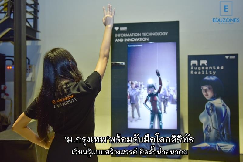 tui sakrapee June 18, 2019 tui sakrapee June 18, 2019 ม.กรุงเทพ พร้อมรับมือโลกดิจิทัล เรียนรู้แบบสร้างสรรค์ คิดล้ำนำอนาคต Technology Disruption ทำให้โลกเปลี่ยนแปลงรวดเร็วและรุนแรง แต่ Creativity ยังคงเป็นเครื่องมือทรงพลังที่สุดในการสร้างโอกาสความสำเร็จให้ทุกธุรกิจ การเรียนการสอนแบบใหม่ที่ผสาน Creativity เข้ากับ Technology ของมหาวิทยาลัยกรุงเทพ จึงทำให้อนาคตของนักศึกษาเปิดกว้างไร้ขีดจำกัด และตอบโจทย์การรับแรงกระแทกจากกระแสดิจิทัลอันเชี่ยวกรากอย่างได้ผล อาจารย์เพชร โอสถานุเคราะห์ อธิการบดี มหาวิทยาลัยกรุงเทพ ให้มุมมองว่า ทุกการเปลี่ยนแปลงคือความท้าทายที่ส่งเสริมให้ทุกคนใช้ความคิดสร้างสรรค์เพื่อหาวิธีจัดการแก้ไขปัญหา ล่าสุด มหาวิทยาลัยกรุงเทพ ประกาศจุดยืนรับเทรนด์ดิจิทัล ด้วยกระบวนการเรียนการสอนสร้างสรรค์ (Creative Education) แล้วเติมทักษะนักศึกษาทุกคณะทุกหลักสูตรให้เหนือกว่าใคร ด้วยการเรียนข้ามศาสตร์ ผนวกรายวิชาด้านเทคโนโลยีให้ทุกคนได้เรียนรู้ เป็นการพัฒนาบัณฑิตคุณภาพสอดรับเศรษฐกิจดิจิทัลตามแผนในยุทธศาสตร์ชาติ 20 ปี พร้อมกับยกหลักสูตรทั้งหมดมาที่ Main Campus รังสิต ซึ่งมีความพร้อมทั้งเรื่องอุปกรณ์และ Ecosystem เพื่อเสริมสมรรถนะการเรียนรู้ของนักศึกษาอย่างเต็มศักยภาพ รศ.ดร.ณัฐภพ นิ่มปิติวัน รองอธิการบดีฝ่ายนวัตกรรมการศึกษา มหาวิทยาลัยกรุงเทพ ให้รายละเอียดว่า นอกจากการพัฒนาผู้เรียนจะยังคงสะท้อนอัตลักษณ์ของมหาวิทยาลัยกรุงเทพ คือ มีความคิดสร้างสรรค์ มีจิตวิญญาณความเป็นเจ้าของธุรกิจ และมีความเป็นสากลแล้ว มหาวิทยาลัยกรุงเทพยังต้องการให้นักศึกษาทุกคนมีกระบวนคิดที่ผสมผสานกันของ Creativity และ Technology เพราะผลลัพธ์ที่ตามมาเมื่อบัณฑิตเข้าสู่ธุรกิจและการทำงานจริงไม่ว่าจะเป็นสาขาอาชีพใด พวกเขาจะสามารถใช้ Creativity เป็นเครื่องมือทรงพลังในการปรับเปลี่ยนแก้ไขปัญหาและสรรค์สร้างนวัตกรรมทุกรูปแบบที่มีเทคโนโลยีเป็นตัวสนับสนุน “มหาวิทยาลัยกรุงเทพอาจถูกรับรู้ความโดดเด่นในคณะวิชาสายศิลป์ แต่เราก็มีหลักสูตรสายวิทยาศาสตร์ในคณะวิศวกรรมศาสตร์ และคณะเทคโนโลยีสารสนเทศและนวัตกรรม มากว่า 25 ปีแล้ว โดยนักศึกษาของเราสามารถสร้างหุ่นยนต์ และ AI ตลอดจนเทคโนโลยีทันสมัยอีกหลากหลายได้ไม่ด้อยกว่าที่อื่น แต่ที่ต่างออกไปคือ ความเป็นนักเทคโนโลยีของเราจะมี Creativity เป็นแรงผลักดันเสมอ เราไม่ปล่อยให้เทคโนโลยีมาจำกัดความคิดสร้างสรรค์ แต่เราใช้ความคิดสร้างสรรค์มาผนวกเทคโนโลยี เพื่อสร้างสิ่งใหม่ๆ ขึ้นมาตลอดเวลา” รองอธิการบดีฝ่ายนวัตกรรมการศึกษา กล่าว ที่สำคัญและแตกต่างจากที่อื่น คือ การผสม