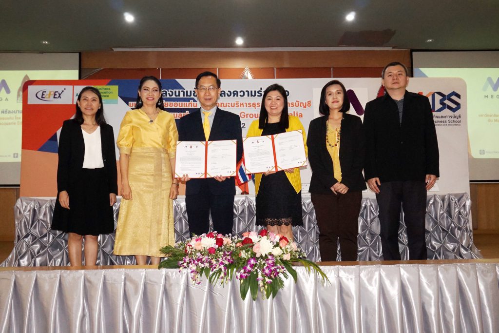 EZ Webmaster July 11, 2019 EZ Webmaster July 11, 2019 มข.จับมือMEGA สถาบันชั้นนำจากออสเตรเลีย เพื่อยกระดับมาตรฐานการศึกษา รองศาสตราจารย์ นพ.ชาญชัย พานทองวิริยะกุล อธิการบดีมหาวิทยาลัยขอนแก่น กล่าวว่า คณะบริหารธุรกิจและการบัญชี มหาวิทยาลัยขอนแก่น ลงนามความร่วมมือทางวิชาการ (MOU) กับMacquarie Education Group Australia (MEGA) เพื่อสร้างความร่วมมือในการพัฒนาด้านการศึกษาทั้งกิจกรรมนอกหลักสูตรสำหรับนักศึกษาและบุคลากรของทั้งสององค์กรโดยใช้ศักยภาพด้านบุคลากรและเครื่องมือร่วมกันพัฒนาด้านวิชาการการเป็นแหล่งเรียนรู้ศึกษาดูงานของนักศึกษาและบุคลากร โดยก่อนหน้านี้ทั้งสองสถาบันได้ร่วมมือกันมาระยะหนึ่งแล้ว สำหรับออสเตรเลียแล้วถือว่ามีมาตรฐานการจัดการศึกษาระดับโลกเป็นที่ยอมรับและมีคนไทยไปศึกษาที่นั่นจำนวนมาก สำหรับ Macquarie Education Group Australia เป็นองค์กรที่มีประสบการณ์และเป็นที่ยอมรับ ดังนั้น ความร่วมมือนี้จะเป็นประโยชน์สำหรับนักศึกษาเราที่ได้เตรียมความพร้อมเพื่อยกระดับการศึกษาให้เป็นสากล และเป็นอีกมิติหนึ่งที่จะทำให้มหาวิทยาลัยขอนแก่นก้าวไปสู่ความเป็นนานาชาติ เกิดกิจกรรมการเรียนการสอนที่ดียิ่งขึ้นต่อไป รองศาสตราจารย์ ดร.เพ็ญศรี เจริญวานิช คณบดีคณะบริหารธุรกิจและการบัญชี มข.กล่าวว่า ตามที่คณะบริหารธุรกิจและการบัญชี มหาวิทยาลัยขอนแก่น ได้ให้ความสำคัญกับกระบวนการสร้างและพัฒนานักบริหารธุรกิจ ผู้ประกอบวิชาชีพบัญชี และผู้ประกอบการให้มีความรู้ความสามารถในการแข่งขันคณะฯจึงมุ่งสร้างสรรค์หลักสูตรและกิจกรรมเสริมหลักสูตรที่มีความแตกต่างและมุ่งหวังที่จะยกระดับสู่ความเป็นเลิศด้านการบริหารธุรกิจและการบัญชีที่ได้มาตรฐานสากล โดยมีการสร้างเครือข่ายความร่วมมือทางวิชาการกับหน่วยงานในระดับนานาชาติเพื่อร่วมการแลกเปลี่ยนความรู้และประสบการณ์ด้านวิชาการระหว่างกัน “การร่วมมือกับ Macquarie Education Group Australia (MEGA) ประเทศออสเตรเลีย สถาบันที่ได้รับการยอมรับจากมหาวิทยาลัยชั้นนำของออสเตรเลียในด้านเปิดสอนภาษาอังกฤษ (English Course) และหลักสูตรประกาศนียบัตรวิชาชีพที่มุ่งเน้นในด้านนวัตกรรมรวมทั้งการติดต่อโปรแกรมฝึกงานต่างๆในประเทศออสเตรเลียจะเป็นการเปิดโอกาสให้กับนักศึกษาและบุคลากรของคณะบริหารธุรกิจและการบัญชี มหาวิทยาลัยขอนแก่น ได้เสริมสร้างทักษะการใช้ภาษาต่างประเทศเป็นการพัฒนาศักยภาพด้านภาษาบนเส้นทางวิชาชีพด้านบริหารธุรกิจ และด้านการบัญชี เพื่อเตรียมความพร้อมในกรณีของการไปฝึกงาน หรือการศึกษาต่อ ณ ต่างประเทศ รวมทั้งเป็นการยังเปิดโอกาสให้บุคลากรของคณะฯได้เพิ่มขีด