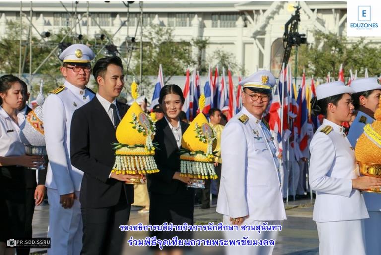 tui sakrapee July 28, 2019 tui sakrapee July 28, 2019 รองอธิการบดีฝ่ายกิจการนักศึกษา สวนสุนันทา ร่วมพิธีจุดเทียนถวายพระพรชัยมงคล ผู้ช่วยศาสตราจารย์ ดร.ชนนาถ มีนะนันทน์ รองอธิการบดีฝ่ายกิจการนักศึกษา ได้เป็นผู้แทนมหาวิทยาลัยราชภัฏสวนสุนันทา อัญเชิญพานพุ่มถวายราชสักการะหน้าพระฉายาลักษณ์และร่วมพิธีจุดเทียนถวายพระพรชัยมงคล เพื่อน้อมถวายพระพรชัยมงคล และเป็นการแสดงพลังแห่งความจงรักภักดีและสำนึกในพระมหากรุณาธิคุณ เนื่องในโอกาสมหามงคลเฉลิมพระชนมพรรษา สมเด็จพระเจ้าอยู่หัว ประจำปี 2562 โดยมีบุคลากรกองพัฒนานักศึกษา, องค์การนักศึกษา และผู้แทนนักศึกษา ร่วมเดินขบวนอัญเชิญเครื่องราชสักการะในคราวนี้อีกด้วย ภาพถ่ายโดย : กองพัฒนานักศึกษา