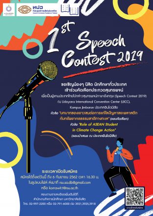 EZ Webmaster August 28, 2019 เปิดรับสมัคร นิสิต,นักศึกษา เข้าร่วมประกวดสุนทรพจน์เพื่อเป็นตัวแทนประเทศไทย รุ่นที่ 1 EZ Webmaster August 28, 2019 ขอเชิญนิสิต นักศึกษา ระดับปริญญาตรีในสังกัดสมาคมสถาบันการศึกษาขั้นอุดมแห่งภูมิภาคเอเชียตะวันออกเฉียงใต้ ประจำประเทศไทย (สออ.ประเทศไทย) ร่วมโครงการพัฒนาสร้างผู้นำนิสิตนักศึกษารุ่นใหม่ในเวทีโลก(นศม.) รุ่นที่ 1 ประกวดสุนทรพจน์เพื่อเป็นตัวแทนประเทศไทยไปกล่าวสุนทรพจน์ภาษาอังกฤษ ระดับอุดมศึกษา ประจำปี 2562 ณ Udayana International Convention Center (UICC), Kampus Jimbaran ประเทศอินโดนีเซีย ระหว่างวันที่ 24-28 ตุลาคม 2562 โดยไม่มีค่าใช้จ่าย ทั้งนี้นิสิตนักศึกษาสามารถส่งคลิปวิดีโอคำกล่าวสุนทรพจน์ภาษาอังกฤษความยาวไม่เกิน 3 นาที พร้อมหลักฐานการสมัครมาที่… Continue Reading