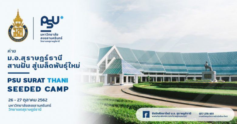 EZ Webmaster August 28, 2019 ค่าย ม.อ.สุราษฎร์ธานี สานฝัน สู่เมล็ดพันธุ์ใหม่ “PSU Surat Seeded Camp” EZ Webmaster August 28, 2019 มาเปิดประสบการณ์ใหม่ด้วยกันกับค่ายดี ๆ ที่จะทำให้น้อง ๆ ได้เข้าใจว่า อนาคตที่น้องฝัน ชีวิตที่น้องต้องการ คืออะไร? กับโอกาสดี ๆ ที่เราจะมอบให้ในค่าย ม.อ.สุราษฎร์ธานี สานฝัน สู่เมล็ดพันธุ์ใหม่ ข้อมูลเบื้องต้นของค่ายนี้ วันที่จัดค่าย 26-27 ตุลาคม 2562 (ค้างคืน) ปิดรับสมัคร 13 กันยายน 2562 (หากเต็มแล้วปิดรับสมัครทันที) จำนวนที่รับ 480 คน ระดับการศึกษา ม.6 เกรดเฉลี่ยรวม 4… Continue Reading
