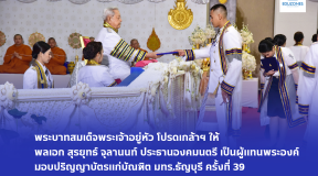 พระบาทสมเด็จพระเจ้าอยู่หัว โปรดเกล้าฯ ให้ พลเอก สุรยุทธ์ จุลานนท์ ประธานองคมนตรี เป็นผู้แทนพระองค์ มอบปริญญาบัตรแก่บัณฑิต มทร.ธัญบุรี ครั้งที่ 39