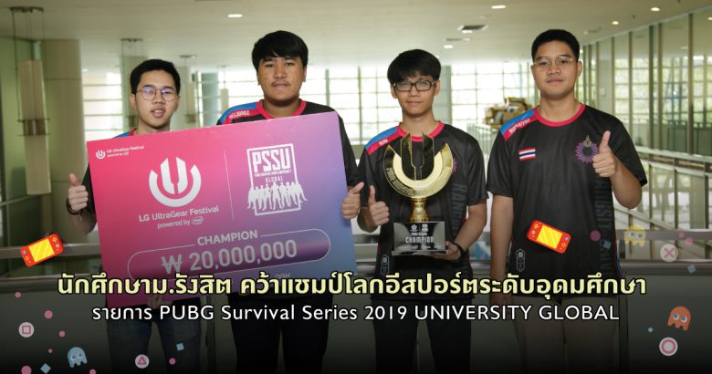 EZ Webmaster September 13, 2019 นักศึกษาม.รังสิต คว้าแชมป์โลกอีสปอร์ตระดับอุดมศึกษา รายการ PUBG Survival Series 2019 UNIVERSITY GLOBAL EZ Webmaster September 13, 2019 ทีมนักศึกษามหาวิทยาลัยรังสิต คว้าแชมป์โลกการแข่งขันอีสปอร์ตระดับอุดมศึกษา รายการ PUBG Survival Series 2019 UNIVERSITY GLOBAL ที่ประเทศเกาหลีใต้ พร้อมรับเงินรางวัล 20 ล้านวอน (ประมาณ 500,000 บาท) นายนิติ คุ้มพะเนียด นักศึกษาสาขาวิชามัลติมีเดีย วิทยาลัยนิเทศศาสตร์ มหาวิทยาลัยรังสิต กล่าวว่า การแข่งขันดังกล่าวนับเป็นก้าวแรกที่พวกเราทีมมหาวิทยาลัยรังสิตได้รับรางวัลใหญ่ระดับโลก โดยการแข่งขันในรายการ PUBG Survival Series 2019 UNIVERSITY GLOBAL พวกเราเป็น 1… Continue Reading