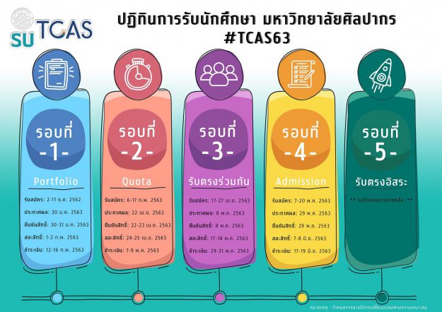 EZ Webmaster October 23, 2019 ปฎิทินการรับสมัครในระบบ TCAS63 ม.ศิลปากร EZ Webmaster October 23, 2019 รอบที่ 1 #Portfolio รับสมัคร 2-11 ธ.ค.62 รอบที่ 2 #โควตา รับสมัคร 6-17 ก.พ.63 รอบที่ 3 #รับตรงร่วมกัน รับสมัคร 17-27 เม.ย.63 รอบที่ 4 #รับกลางร่วมกัน รับสมัคร 7-20 พ.ค.63 รอบที่ 5 #รับตรงอิสระ ประกาศในภายหลัง เพิ่มเติมที่ https://www.admission.su.ac.th Continue Reading