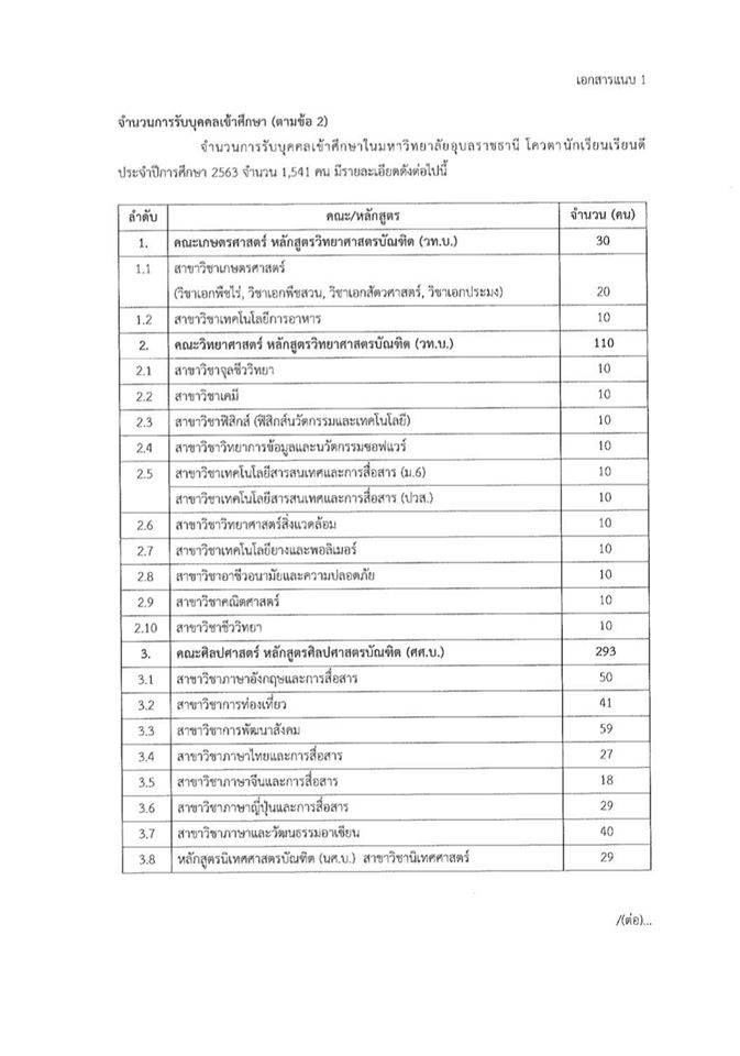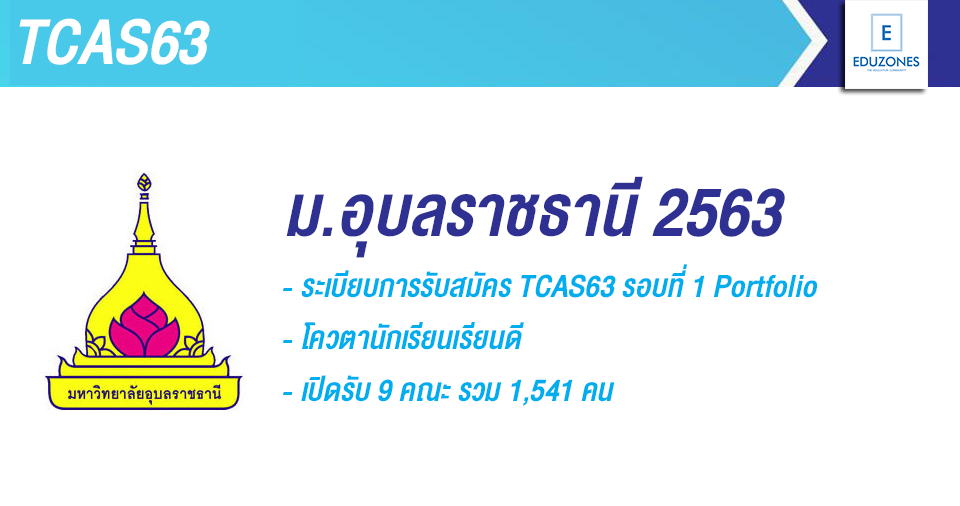 EZ Webmaster November 11, 2019 EZ Webmaster November 11, 2019 ระเบียบการรับสมัคร TCAS63 รอบที่ 1 Portfolio โควตานักเรียนเรียนดี ม.อุบลราชธานี 2563 กำหนดการรับสมัคร รับสมัคร 2-5 ธ.ค. ที่ http://www.entry.ubu.ac.th/new/registrar/ จำนวนรับ ระเบียบการรับสมัครที่ คลิก