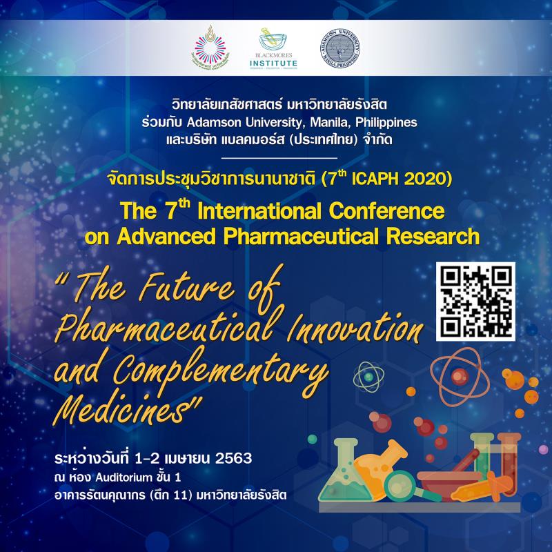 EZ Webmaster January 13, 2020 EZ Webmaster January 13, 2020 เภสัชฯ ม.รังสิต จัดการประชุมวิชาการนานาชาติ (7th ICAPH 2020) วิทยาลัยเภสัชศาสตร์ มหาวิทยาลัยรังสิต ร่วมกับ Adamson University, Manila, Philippines และบริษัท แบลคมอร์ส (ประเทศไทย) จำกัด จัดการประชุมวิชาการนานาชาติ (7th ICAPH 2020) The 7th International Conference on Advanced Pharmaceutical Research “The Future of Pharmaceutical Innovation and Complementary Medicines” ระหว่างวันที่ 1-2 เมษายน 2563 เวลา 08.00-17.30 น. ณ ห้อง Auditorium ชั้น 1 อาคารรัตนคุณากร (ตึก 11) มหาวิทยาลัยรังสิต ทั้งนี้ เพื่อเป็นเวทีวิชาการเผยแพร่และแลกเปลี่ยนองค์ความรู้ใหม่ในงานวิจัยทางด้านเภสัชศาสตร์และวิทยาศาสตร์การแพทย์ สำหรับผู้ที่สนใจสามารถลงทะเบียนในระบบออนไลน์ที่ https://sites.google.com/rsu.ac.th/icaph2020 ภายในวันที่ 20 มีนาคม 2563 สอบถามรายละเอียดเพิ่มเติม โทร. 0-2791-6000 ต่อ 1423