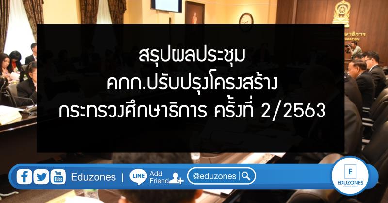 EZ Webmaster January 25, 2020 EZ Webmaster January 25, 2020 สรุปผลประชุม คกก.ปรับปรุงโครงสร้างกระทรวงศึกษาธิการ ครั้งที่ 2/2563 สรุปผลประชุม คกก.ปรับปรุงโครงสร้างกระทรวงศึกษาธิการ ครั้งที่ 2/2563 หลังจากวันที่ 24 มกราคม 2563 ที่ได้มีการจัดการประชุมคณะกรรมการปรับปรุงโครงสร้างกระทรวงศึกษาธิการ ครั้งที่ 2/2563 โดยมีนายวราวิช กำภู ณ อยุธยา ที่ปรึกษารัฐมนตรีว่าการกระทรวงศึกษาธิการ เป็นประธานการประชุม ได้มีมีมติในการประชุมที่สำคัญ 2 เรื่องได้แก่ การปรับปรุงโครงสร้างการทำงาน และ การแก้ปัญหาเรื่องบุคลากร สำหรับในส่วนของการแก้ปัญหาเรื่องบุคลากรนั้นมีมติที่ประชุมเห็นชอบในหลักการว่า ควรให้ต้นสังกัดเช่น สำนักงานคณะกรรมการการศึกษาขั้นพื้นฐาน (สพฐ.) มีอำนาจในการพิจารณาการบริหารงานบุคคลเอง ไม่ว่าจะเป็นการ “เลื่อน-ลด-ปลด-ย้าย” เพื่อให้การทำงานของจังหวัดมีประสิทธิภาพมากที่สุด เนื่องจากที่ผ่านมานั้น ที่อำนาจการบริหารงานบุคคลเป็นอำนาจของคณะกรรมการศึกษาธิการจังหวัด (กศจ.) ซึ่งอาจพบปัญหาการร้องเรียนหรือต่อต้านการประท้วงที่ไม่ต้องการผู้อำนวยการโรงเรียนที่ย้ายมาอยู่ใหม่ ในขณะที่หน่วยงานตันสังกัดอย่างเช่น สพฐ. นั้น ไม่สามารถเข้าไปจัดการปัญหาได้ เพราะเป็นหน้าที่ของคณะกรรมการการศึกษาธิการจังหวัด (กศจ.) ในการบริหารจัดการในเรื่องนี้ โดยนายวราวิช ที่ปรึกษารัฐมนตรีว่าการกระทรวงศึกษาธิการ และประธานในการประชุมครั้งนี้กล่าวว่า “ที่ประชุมได้มอบหมายให้ สพฐ.หาแนวทางดำเนินการ โดยนำปัญหาที่เคยมีไปพิจารณาด้วย เช่น หากมอบอำนาจไปยัง อ.ก.ค.ศ.เขตพื้นที่ฯ เช่นเดิม ก็อาจจะเป็นไซโล หรือแท่งซ้อนแท่งอีก อาจจะเป็น 225 แท่ง ย้ายข้ามกันไม่ได้ สพฐ.จะแก้อย่างไร ที่ประชุมจึงเห็นว่าควรอยู่ที่จังหวัด แต่ไม่เกี่ยวกับ ศธจ. อาจจะเป็นรูปแบบคล้าย อ.ก.ค.ศ.เขตพื้นที่ฯ เดิม แต่อยู่ในระดับ “จังหวัด” โดยสำนักงานอาจจะอยู่ที่เขต 1 ทั้ง 77 แห่ง เช่น การย้ายภายในจังหวัด สมมุติมี 6 เขตพื้นที่การศึกษา ก็ต้องไปคุยร่วมกันให้สามารถย้ายข้ามเขตได้ โดยคณะกรรมการพิจารณาจะให้เป็นคณะกรรมการจากเขตพื้นที่การศึกษาเอง แต่หากเป็นการพิจารณาข้ามจังหวัด ให้กลับไปที่กระทรวงพิจารณา” และในส่วนของ การปรับปรุงโครงสร้างการทำงานนั้น ทางที่ประชุมมอบหมายให้ทางสำนักงานคณะกรรมการการศึกษาขั้นพื้นฐาน (สพฐ.) และ สำนักงานปลัดกระทรวงศึกษาธิการ (สป.ศธ.) ตั้งตัวแทนในการของทั้งสองหน่วยงานเพื่อมาทำงานร่วมกันในการวิเคราะห์ภารกิจงาน (Function) ให้เกิดความชัดเจนกับทั้งสองหน่วยงานว่า งานประเภทใดเป็นของหน่วยงานใดและสำหรับงานที่