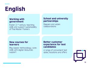 EZ Webmaster February 4, 2020 EZ Webmaster February 4, 2020 บริติช เคานซิล หนุนความร่วมมือ ไทย – อังกฤษ ปี 2563 เดินหน้ายกระดับภาษาอังกฤษ พัฒนาอุดมศึกษาและวิทยาศาสตร์สู่สากล และส่งเสริมเศรษฐกิจสร้างสรรค์ท้องถิ่น บริติช เคานซิล เผยทิศทางการดำเนินงานปี 2563 เดินหน้าสานความร่วมมือระหว่างไทย – อังกฤษ ใน 3 ด้าน ได้แก่ ภาษาอังกฤษ อุดมศึกษาและวิทยาศาสตร์ และอุตสาหกรรมสร้างสรรค์ ผ่านไฮไลท์แผนการดำเนินการตลอดปี 2563 ได้แก่ 1) ร่วมหารือกับกระทรวงศึกษาธิการ และกระทรวงการอุดมศึกษา วิทยาศาสตร์ วิจัยและนวัตกรรม ในการพัฒนาพัฒนาทักษะการสอนภาษาอังกฤษรวมถึงทักษะของคุณครูในศตวรรษที่ 21 2) การปรับปรุงหลักสูตรและเปิดตัวคอร์สเรียนภาษาอังกฤษใหม่ตอบรับเทรนด์การเปลี่ยนแปลงของผู้เรียน 3) เดินหน้าส่งเสริมการศึกษาสหราชอาณาจักรพร้อมกับทุนการศึกษารวมมูลค่ากว่า 6,800,000 บาท 4) ร่วมมือกับหน่วยงานภาครัฐและเอกชน ในการพัฒนาระบบนิเวศของวิทยาศาสตร์และงานวิจัย 5) เดินหน้าพัฒนางานศิลปะหัตถกรรมผ่านรูปแบบกิจการเพื่อสังคม พร้อมเผยสถิติคนไทยเลือกศึกษาต่อระดับอุดมศึกษาที่สหราชอาณาจักร มากเป็นอันดับ 1 โดย 5 สาขาวิชาที่คนไทยนิยมเลือกเรียน ได้แก่ 1) การจัดการธุรกิจ 2) วิศวกรรมและเทคโนโลยี 3) สังคมศาสตร์ 4) กฎหมาย 5) ออกแบบและอุตสาหกรรมสร้างสรรค์ รวมไปถึงในช่วง 3-4 ปีที่ผ่านมีความร่วมมือกันด้านวิชาการและงานวิจัยระหว่างสถาบันของไทย-อังกฤษ กว่า 55 ความร่วมมือ โดยเน้นสาขาด้านชีววิทยาและชีวการแพทย์ ด้านอาหารและการเกษตร และด้านพลังงานและวิศวกรรม มร. แอนดรูว์ กลาส ผู้อำนวยการ บริติช เคานซิล ประเทศไทย กล่าวว่า บริติช เคานซิล องค์กรนานาชาติเพื่อส่งเสริมโอกาสทางการศึกษา ศิลปะ และวัฒนธรรมแห่งสหราชอาณาจักร เดินหน้าสานความร่วมมือไทย – อังกฤษอย่างต่อเนื่อง มุ่งสานความสัมพันธ์ระหว่างสหราชอาณาจักรกับผู้คนทั่วโลก โดยเราจะทำงานร่วมกันอย่างใกล้ชิดระหว่างประเทศไทยและสหราชอาณาจักร ในการสร้างความเปลี่ยนแปลงให้กับผู้คนในทางที่ดีขึ้นด้วยการสร้างโอกาส สร้างเครือข่าย และสร้างความไว้วางใจระหว่างกัน ซึ่งบริติช เคานซิล ประเทศไทย ยังคงมุ่งเน้นการทำงานใน 3 ด้าน ได้แก่ ภาษาอังกฤษ อุดมศึกษาและวิทยาศาสตร์ และอุตสาหกรรมสร้างสรรค์ “ปัจจุบันมีคนใช้ภาษาอังกฤษหรือกำลังเรียนภาษาอังกฤษกว่า 2 พันล้านคนทั่วโลก และทักษะภาษาเป็นหนึ่งในซอฟท์สกิลที่สำคัญที่สุดของเยาวชนในอาเซียน โดยประเทศไทยยังคงมีอุปสรรคด้านภาษาอังกฤษอันเกิดจาก ความไม่เท่าเทียม ทักษะภาษาของครูผู้สอน วิธีการสอน และวิธีการวัดผล ” มร. แอนดรูว์ 
