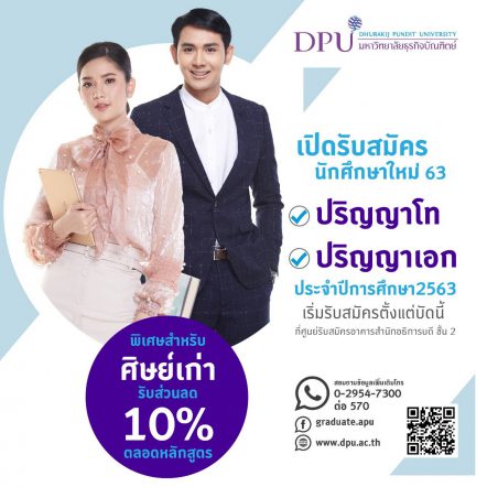 EZ Webmaster February 17, 2020 ม.ธุรกิจบัณฑิตย์ เปิดรับสมัคร นศ.ป.โท-เอก ปี 63 EZ Webmaster February 17, 2020 มหาวิทยาลัยธุรกิจบัณฑิตย์ เปิดรับสมัครนักศึกษาใหม่ ปริญญาโท ปริญญาเอก ประจำปีการศึกษา 2563 ค้นหาเส้นทางที่จะทำให้คุณพบความสำเร็จ พร้อมมุ่งสู่ความเป็นมืออาชีพ ในยุคเศรษฐกิจดิจิทัลอย่างสมบูรณ์แบบกับหลักสูตรคุณภาพ พิเศษสำหรับศิษย์เก่า รับส่วนลด 10% ตลอดหลักสูตร ผู้สนใจสามารถสมัครเรียนได้ตั้งแต่วันนี้เป็นต้นไปที่ศูนย์รับสมัครนักศึกษาใหม่ อาคารอธิการบดี ชั้น 2 หรือสอบถามรายละเอียดเพิ่มเติม โทร.0-2954-7300 ต่อ 570 Continue Reading