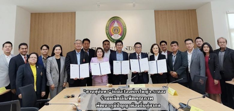tui sakrapee February 25, 2020 “สวนสุนันทา”จับมือ3องค์กรใหญ่จ.ระนอง ร่วมผลิตบัณฑิตคุณภาพ-พัฒนาภูมิปัญญาท้องถิ่นสู่สากล tui sakrapee February 25, 2020 วันที่ 25 กุมภาพันธ์ 2563 มหาวิทยาลัยราชภัฏสวนสุนันทา โดยศูนย์การศึกษาจังหวัดระนอง จัดพิธีลงนามบันทึกข้อตกลงความร่วมมือทางวิชาการร่วมกับอุตสาหกรรมจังหวัดระนอง วิทยาลัยชุมชนระนอง และสำนักงานพาณิชย์จังหวัดระนอง ณ ห้องประชุมมหาวิทยาลัยราชภัฏสวนสุนันทา ศูนย์การศึกษาจ.ระนอง โดยมี รศ.ดร.ฤๅเดช เกิดวิชัย อธิการบดี เป็นประธานการร่วมลงนาม พร้อมด้วย นางดวงธิดา จันทร์พุ่ม สำนักงานอุตสาหกรรมจังหวัดระนอง นายปรารมณ์ นาคบำรุง ผู้อำนวยการวิทยาลัยชุมชนระนอง และนางวนิดา อรุโณทัย พาณิชย์จังหวัดระนอง ร่วมลงนาม ทั้งนี้ ผู้บริหาร บุคลากรของทั้งสี่หน่วยงานเข้าร่วมเป็นสักขีพยานในพิธีครั้งนี้ด้วย สำหรับการร่วมมือกันในครั้งนี้… Continue Reading