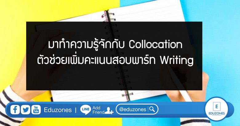 EZ Webmaster March 9, 2020 มาทำความรู้จักกับ Collocation ตัวช่วยเพิ่มคะแนนสอบพาร์ท Writing EZ Webmaster March 9, 2020 สำหรับคนที่กำลังเตรียมตัวสอบ TOEFL IELTS หรือข้อสอบวัดระดับภาษาที่ต้องมีการวัดทักษะการเขียนภาษาอังกฤษ อย่างพาร์ท writing นั้นก็อาจประสบปัญหากับการต้องเขียน essay ในข้อสอบ ที่ไม่รู้ว่าจะเขียนอย่างไรถึงดีจนสามารถพิชิตคะแนนในพาร์ทนี้มาได้ วันนี้เราจึงมีเทคนิคการเพิ่มความลื่นไหลให้กับการเขียนในพาร์ท writing ด้วยการใช้ collocation มาฝากกันค่ะ คำว่า Collocation มาจากคำภาษาอังกฤษ 2 คำ คือ col (to do something with something or someone) + location… Continue Reading