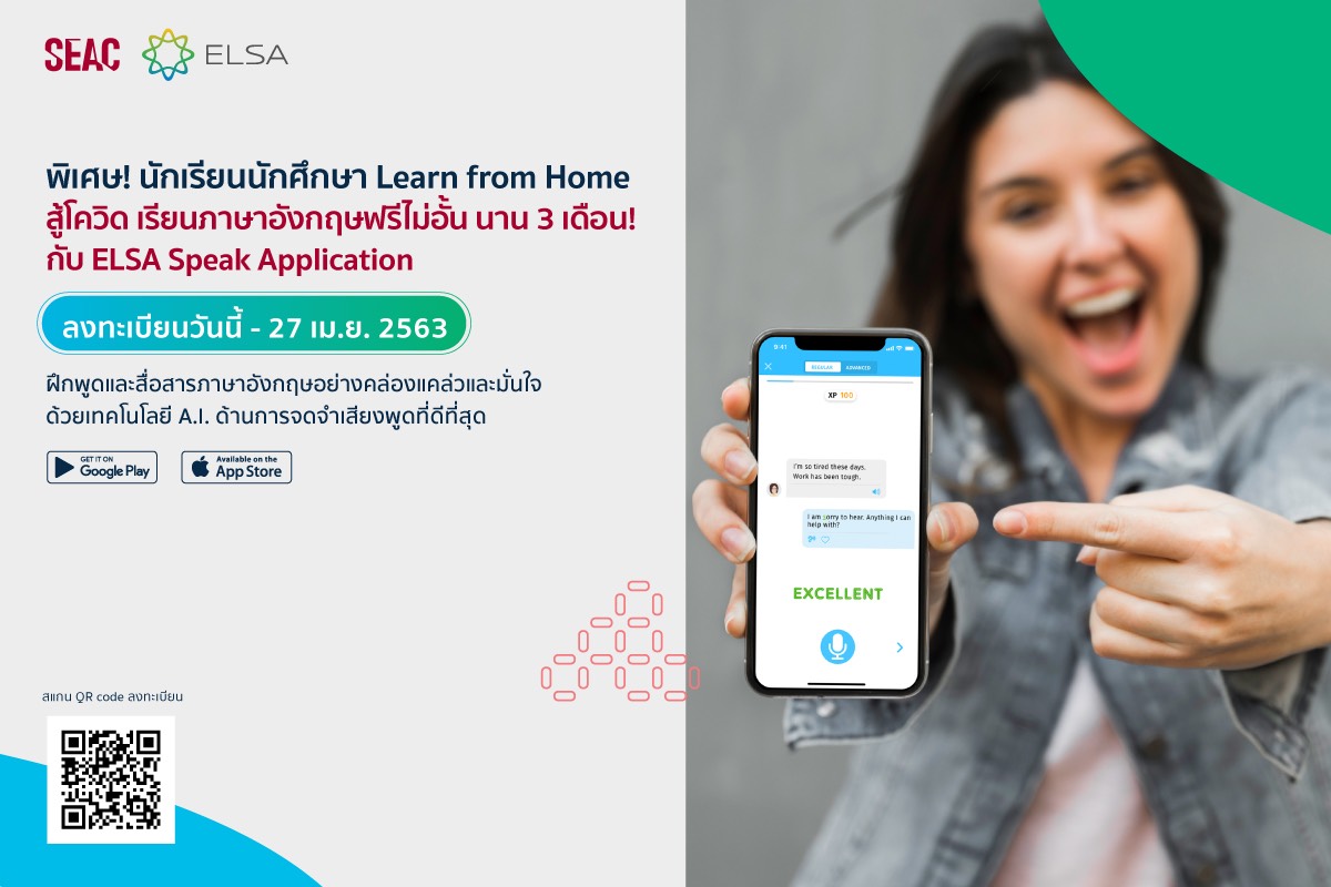 EZ Webmaster April 7, 2020 EZ Webmaster April 7, 2020 SEAC ส่งแคมเปญให้เด็กไทยฝึกภาษาอังกฤษฟรี! ผ่านสุดยอด AI แอพพลิเคชั่น “ELSA Speak” Upskill ต่อเนื่องท่ามกลางสถานการณ์ COVID-19 SEAC (เอสอีเอซี) ศูนย์พัฒนาและส่งเสริมการเรียนรู้ตลอดชีวิตแห่งภูมิภาคอาเซียน เดินหน้าตอกย้ำพันธกิจ EMPOWER LIVING เติมเต็มทุกเป้าหมายของการใช้ชีวิตให้สมบูรณ์แบบผ่านการเรียนรู้และพัฒนาอย่างต่อเนื่องตลอดชีวิต ผนึก ELSA สตาร์ทอัพชื่อดังจากซิลิคอน แวลลีย์ ผู้คิดค้น ELSA Speak สุดยอด AI แอพพลิเคชั่นฝึกการพูดภาษาอังกฤษ ส่งแคมเปญเพื่อสังคมให้นักเรียนระดับชั้นประถมศึกษาปีที่ 1 จนถึงนิสิต นักศึกษาระดับปริญญาตรี Upskill เรียนภาษาอังกฤษฟรี 3 เดือน ส่งตรงกว่า 1600+ บทเรียนการฝึกออกเสียงภาษาอังกฤษ เพื่อกระตุ้นเด็กไทยเรียนรู้อย่างต่อเนื่องภายใต้สถานการณ์ COVID-19 นางอริญญา เถลิงศรี กรรมการผู้จัดการ SEAC (Southeast Asia Center) ศูนย์พัฒนาและส่งเสริมการเรียนรู้ตลอดชีวิตแห่งภูมิภาคอาเซียน กล่าวว่า “SEAC เชื่อมั่นในเรื่องการเรียนรู้ตลอดชีวิตมาโดยตลอด ธุรกิจและบริการของเราจึงได้รับการออกแบบมาบนพื้นฐานที่ต้องการให้คนในทุกช่วงวัยได้มีโอกาสเรียนรู้ทักษะใหม่ๆ และพัฒนาตนเองอย่างต่อเนื่องภายใต้พันธกิจ EMPOWER LIVING ที่ต้องการเติมเต็มทุกเป้าหมายของการใช้ชีวิต ขณะเดียวกันเราก็เล็งเห็นว่าท่ามกลางสถานการณ์การระบาดของ COVID-19 ซึ่งกินพื้นที่เป็นวงกว้างในทุกระดับ และส่งผลให้โรงเรียนและสถานศึกษาจำต้องปิดการเรียนชั่วคราว นักเรียนนักศึกษาได้รับผลกระทบโดยตรงจากสถานการณ์นี้ รวมถึงเด็กอีกหลายๆ คนที่อยู่ในช่วงปิดเทอม แต่ไม่สามารถออกไปทำกิจกรรมข้างนอกบ้านได้ก็ส่งผลให้พ่อแม่ผู้ปกครองได้รับผลทางอ้อม คือต้องคอยมองหากิจกรรม บทเรียน หรือการเรียนทางเลือกแบบออนไลน์มาช่วยผ่อนหนักให้เป็นเบา SEAC จึงได้ร่วมมือกับ ELSA สนับสนุนการเรียนรู้อย่างต่อเนื่อง จัดทำแคมเปญเพื่อสังคมเปิดแอพพลิเคชั่นฝึกภาษาอังกฤษ “ELSA Speak” ให้น้องๆ นักเรียน นิสิตนักศึกษาระดับชั้นประถมศึกษาปีที่ 1 ถึงปริญญาตรีทั่วประเทศ ได้ใช้ช่วงเวลานี้เรียนรู้ทักษะภาษาอังกฤษ อัดแน่นด้วยบทเรียนและหลักสูตรกว่า 1,600+ บทเรียน ฟรีเป็นระยะเวลา 3 เดือน โดยสามารถลงทะเบียนรับสิทธิพิเศษนี้ได้ตั้งแต่วันนี้ – 27 เมษายน 2563” ELSA Speak คือ สุดยอดแอพพลิเคชั่นฝึกการพูดภาษาอังกฤษที่ได้รับการพัฒนาโดยสตาร์ทอัพชื่อดัง ELSA ปัจจุบันมีผู้ใช้งานกว่า 7 ล้านคนทั่วโลก ELSA Speak แตกต่างด้วยเทคโนโลยี AI ที่แม่นยำที่สุดในเรื่องการแยกแยะเสียงพูด (Speech Recognition) เจ้าแรกและเจ้าเดียวที่สามารถจับและวิเคราะห์สำเนียงของผู้ใช้งานได้อย่างถูกต้องแม่น