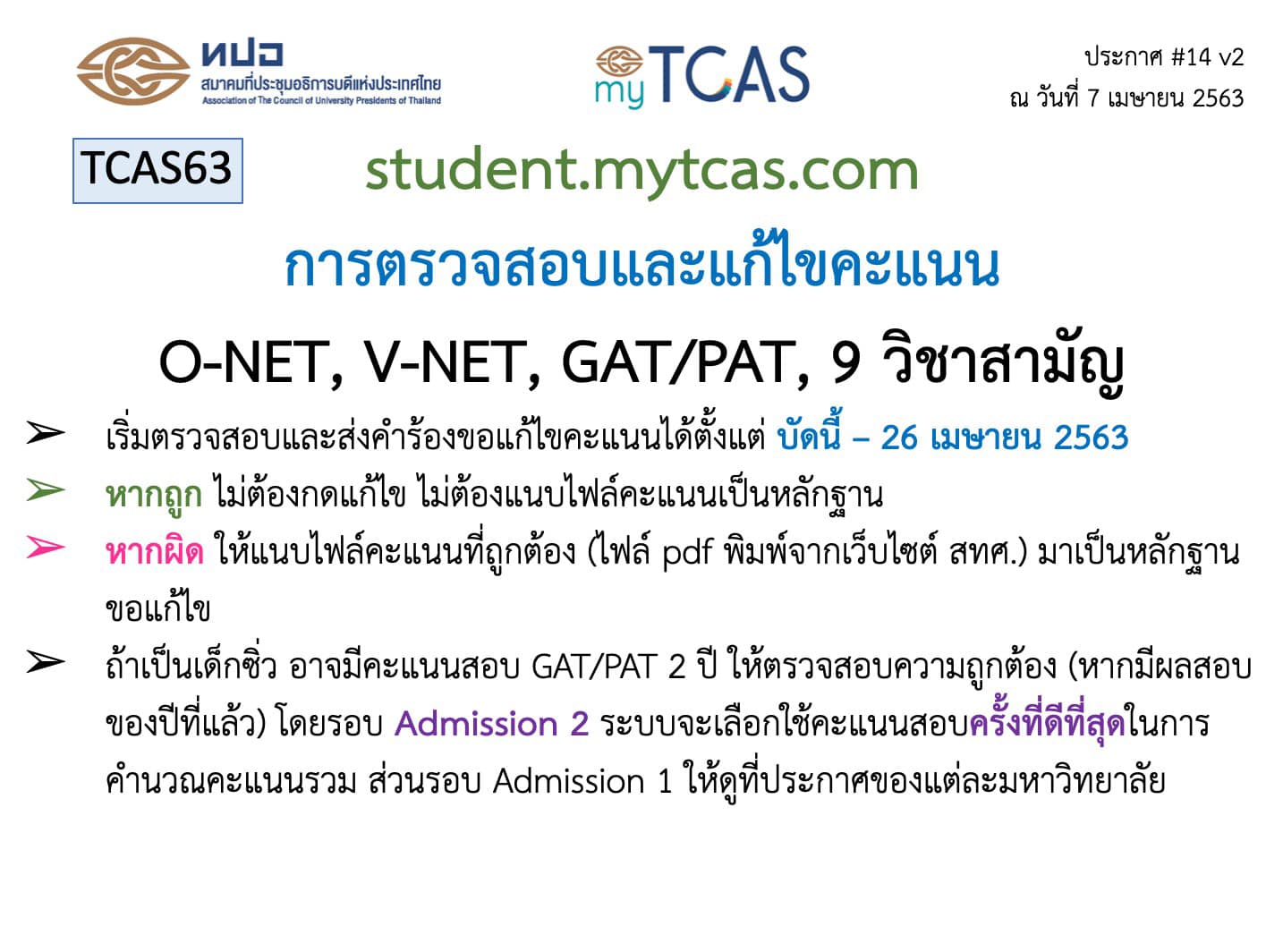 การตรวจสอบและแก้ไขคะแนน O-NET, V-NET, GAT/PAT, 9 วิชาสามัญ