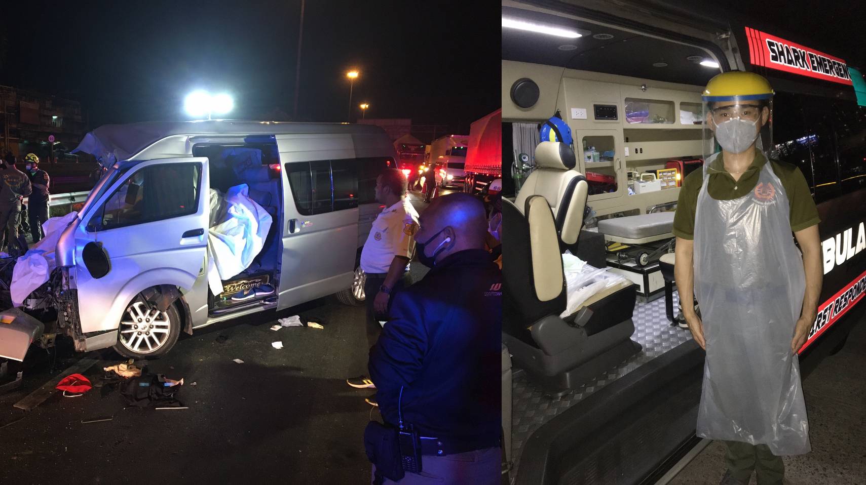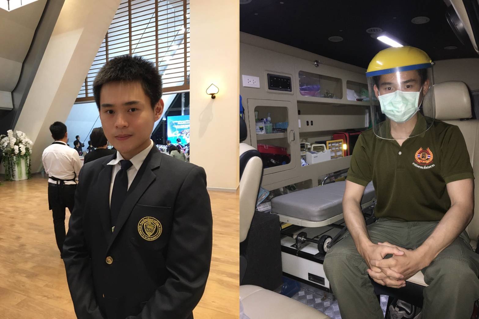 นายวีรพัฒน์ อึ้งอร่าม (น้องเบนซ์) คณะวิทยาลัยผู้ประกอบการและประธานชมรมอาสาสมัครกู้ชีพUTCC มหาวิทยาลัยหอการค้าไทย เปิดเผยว่า “ผมเป็นอาสาสมัครกู้ภัยอยู่แล้วและเป็นสมาชิกมูลนิธิร่วมกตัญญู ที่ผ่านมาเรียนจบหลักสูตรกู้ภัยที่ได้มาตรฐานในประเทศและต่างประเทศ ซึ่งก่อนหน้านี้ได้เดินทางไปช่วยผู้ประสบภัยหลายสถานที่ของอาสาสมัครกู้ภัย จากสภาวะวิกฤตโรคระบาดโควิด – 19 ครั้งนี้มีพี่น้องประชาชนจำนวนมากได้รับความเดือดร้อน การช่วยเหลือของหน่วนกู้ภัยตอนนี้ก็มีการปรับตัวอย่างมาก ต้องหาอุปกรณ์มาป้องกันตัวเองให้มากกว่าเดิม จากเมื่อก่อนที่มีแค่แว่นตา หน้ากากอนามัยธรรมดา ถุงมือทั่วไป ตอนนี้ก็ต้องหาชุด PPE ระดับC ที่เป็นชุดสำหรับป้องกันไวรัสและสามารถปกป้องทุกส่วนของร่างกายเราไม่ให้สัมผัสกับไวรัสได้ ด้านประชาชนที่ได้รับความเดือนร้อนสามารถโทรแจ้งได้ที่เบอร์ 1669 ,16460 ทั้งสองสายนี้จะเป็นสายด่วนฉุกเฉินมีเจ้าหน้าที่คอยคัดกรองไวรัสโควิด – 19 เบื้องต้นให้กับผู้ที่โทรมาแจ้งผ่านทางโทรศัพท์ ที่สำคัญอยากจะขอความร่วมมือและรบกวนให้ทุกคนที่โทรเข้ามาแจ้งนั้นพูดความจริงทั้งหมด เพราะนอกจากจะเป็นผลดีต่อตัวท่านแล้วยังเป็นผลดีต่อเจ้าหน้าที่ผู้ที่ปฏิบัติงานอีกด้วย และก็จะทำให้เจ้าหน้าที่มีความปลอดภัยเพื่อที่จะเซฟบุคลากรทางการแพทย์ให้ได้มากที่สุด เพราะตอนนี้บุคลากรก็ทำหน้าที่เต็มอัตราส่วนอยู่แล้ว เราช่วยท่าน ท่านก็ต้องช่วยเราก็เลยอยากจะขอความร่วมมือตรงนี้ด้วย”