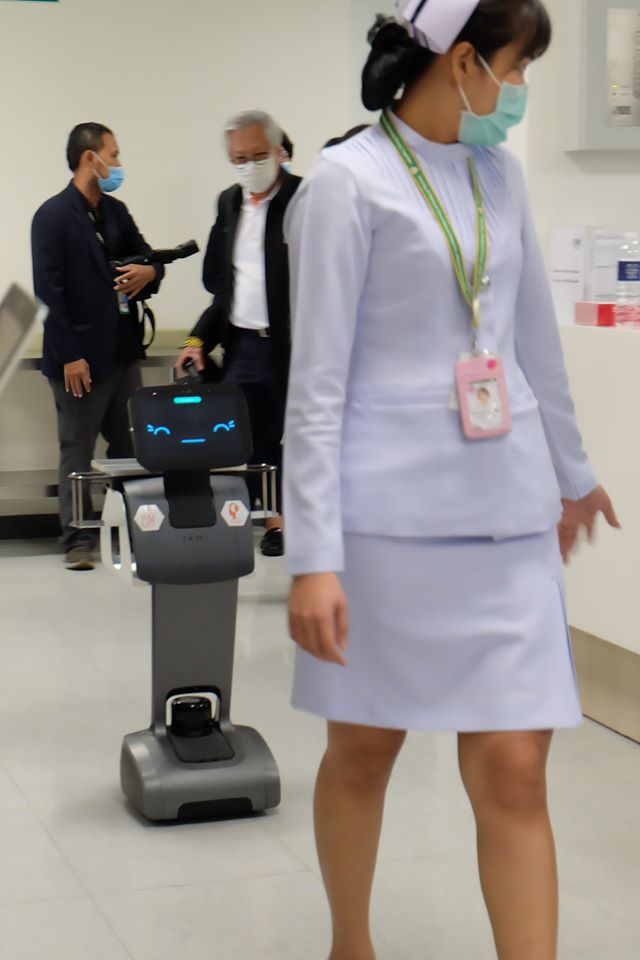 EZ Webmaster May 7, 2020 EZ Webmaster May 7, 2020 ฟีโบ้ มจธ. ส่งมอบ มดบริรักษ์ ชุดแรก ประจำการช่วยสนับสนุนบุคลากรทางการแพทย์ดูแลผู้ป่วย COVID-19 ณ โรงพยาบาลรามาธิบดีจักรีนฤบดินทร์ เมื่อวันที่ 5 พฤษภาคม 2563 ณ โรงพยาบาลรามาธิบดีจักรีนฤบดินทร์ ศาสตราจารย์ นายแพทย์ปิยมิตร ศรีธราคณบดีคณะแพทยศาสตร์โรงพยาบาลรามาธิบดี และ นายแพทย์ไพโรจน์ บุญคงชื่น ผู้อำนวยการโรงพยาบาลรามาธิบดีจักรีนฤบดินทร์ รับมอบ “มดบริรักษ์” ชุดระบบหุ่นยนต์ช่วยบุคลากรทางการแพทย์ ปฏิบัติงานในโรงพยาบาลช่วงสถานการณ์แพร่ระบาดของไวรัสโคโรนา โดยมี รองศาสตราจารย์ ดร.สุวิทย์ แซ่เตีย อธิการบดีมหาวิทยาลัยเทคโนโลยีพระจอมเกล้าธนบุรี (มจธ.) เป็นประธานในการส่งมอบ พร้อมชมการสาธิตการทำงานของนวัตกรรมชุดระบบหุ่นยนต์ฯ โดยมี รองศาสตราจารย์ ดร.ชิต เหล่าวัฒนา หัวหน้าโครงการมดบริรักษ์ และทีมพัฒนา สมเด็จพระกนิษฐาธิราชเจ้า กรมสมเด็จพระเทพรัตนราชสุดาฯ สยามบรมราชกุมารี ทรงพระกรุณาโปรดเกล้าโปรดกระหม่อม พระราชทานชื่อ “มดบริรักษ์” ให้กับหุ่นยนต์ FIBO AGAINST COVID-19: FAC ชุดระบบหุ่นยนต์บนแพลตฟอร์ม การควบคุมที่พัฒนาโดยสถาบันวิทยาการหุ่นยนต์ภาคสนาม (ฟีโบ้) มหาวิทยาลัยเทคโนโลยีพระจอมเกล้าธนบุรี (มจธ.) ร่วมกับภาคเอกชน ด้วยความตั้งใจที่ต้องการนำหุ่นยนต์ให้ทีมแพทย์ พยาบาล ใช้สนับสนุนการตรวจรักษาผู้ป่วยที่พักรักษาตัวด้วยโรค COVID-19 และพบปัญหาด้านการสื่อสารและการเข้าให้การดูแล ศ. นพ.ปิยมิตร ศรีธรา คณบดีคณะแพทยศาสตร์โรงพยาบาลรามาธิบดี กล่าวถึงว่า ทางคณะได้จัดตั้งศูนย์เพื่อทำการดูแลรักษาผู้ป่วยโรค COVID-19 โดยเฉพาะตึกสถาบันแห่งชาติรามาธิบดีจักรีนฤบดินทร์ สืบเนื่องมาจากอัตราการระบาดของโรคในระยะเริ่มแรกที่มักเกิดขึ้นภายในโรงพยาบาล และส่งผลให้ผู้ป่วยเรื้อรังโรคอื่น ๆ ได้รับผลกระทบไปด้วย ดังนั้นการจัดพื้นที่จำเพาะจึงสำคัญอย่างยิ่งที่จะสามารถยับยั้งการแพร่กระจายของเชื้อเป็นวงกว้างได้ การได้รับการสนับสนุนระบบหุ่นยนต์มดบริรักษ์ถือเป็นประโยชน์ต่อบุคลากรทางการแพทย์อย่างมหาศาล เนื่องจากสามารถลดความเสี่ยงของการติดเชื้อและลดการใช้ทรัพยากรในการป้องกันลงได้ อีกทั้งระบบหุ่นยนต์ฯได้ถูกจัดทำขึ้นเพื่อสนับสนุนงานทางการแพทย์ในบริบทต่าง ๆ ตามการใช้งาน รศ. ดร.สุวิทย์ แซ่เตีย อธิการบดี มจธ. กล่าวว่า มจธ. เข้าใจถึงปัญหาและความเสี่ยงที่เกิดขึ้นจากการระบาดของโรคCOVID-19 จึงพยายามที่จะใช้ความเชี่ยวชาญทางด้านวิศวกรรมศาสตร์ และเทคโนโลยี เพื่อช่วยเหลือและสนับสนุนบุคลากรทางการแพทย์ที่เป็นแนวหน้าในการรับมือกับการร