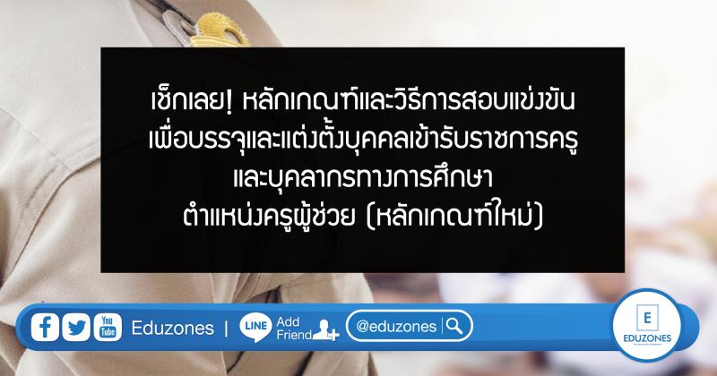 EZ Webmaster May 23, 2020 EZ Webmaster May 23, 2020 เช็กเลย! หลักเกณฑ์และวิธีการสอบแข่งขันเพื่อบรรจุและแต่งตั้งบุคคลเข้ารับราชการครูและบุคลากรทางการศึกษา ตำแหน่งครูผู้ช่วย (หลักเกณฑ์ใหม่) เมื่อวันที่ 22 พฤษภาคม 2563 ทางสำนักงาน ก.ค.ศ. กระทรวงศึกษาธิการ ได้ส่งเอกสารเพื่อแจ้ง หลักเกณฑ์และวิธีการสอบแข่งขันเพื่อบรรจุและแต่งตั้งบุคคลเข้ารับราชการครูและบุคลากรทางการศึกษา ตำแหน่งครูผู้ช่วย (หลักเกณฑ์ใหม่) แก่ปลัดกระทรวงศึกษาธิการ เลขาธิการ ศึกษาธิการจังหวัด และผู้อำนวยการสำนักงานเขตพื้นที่การศึกษา ซึ่งมีเนื้อหาดังนี้ ตามหนังสือที่อ้างถึง ๑ สํานักงาน ก.ค.ศ. ได้แจ้งหลักเกณฑ์และวิธีการสอบแข่งขัน เพื่อบรรจุและแต่งตั้งบุคคลเข้ารับราชการเป็นข้าราชการครูและบุคลากรทางการศึกษา ตําแหน่งครูผู้ช่วย ให้ทราบและถือปฏิบัติ นั้น ก.ค.ศ. พิจารณาแล้วมีมติ ดังนี้ ๑. ให้ยกเลิกหลักเกณฑ์และวิธีการสอบแข่งขันเพื่อบรรจุและแต่งตั้งบุคคลเข้ารับราชการ เป็นข้าราชการครูและบุคลากรทางการศึกษา ตําแหน่งครูผู้ช่วย ตามหนังสือที่อ้างถึง ๑ ๒. กําหนดหลักเกณฑ์และวิธีการสอบแข่งขันเพื่อบรรจุและแต่งตั้งบุคคลเข้ารับราชการ เป็นข้าราชการครูและบุคลากรทางการศึกษา ตําแหน่งครูผู้ช่วย ตามสิ่งที่ส่งมาด้วย โดยให้ใช้บังคับตั้งแต่บัดนี้เป็นต้นไป ทั้งนี้ การใดที่อยู่ระหว่างดําเนินการ ตามหนังสือที่อ้างถึง ๑ – ๒ ให้ดําเนินการต่อไป จนแล้วเสร็จ จึงเรียนมาเพื่อโปรดทราบและถือปฏิบัติ สำหรับหลักเกณฑ์และวิธีการสอบแข่งขันเพื่อบรรจุและแต่งตั้งบุคคลเข้ารับราชการ ที่ทาง ก.ค.ศ. กำหนด มีดังนี้ เพื่อให้การดําเนินการสอบแข่งขันเพื่อบรรจุและแต่งตั้งบุคคลเข้ารับราชการเป็นข้าราชการครู และบุคลากรทางการศึกษา ตําแหน่งครูผู้ช่วย ได้มาซึ่งบุคคลที่มีความรู้ ความสามารถ ทักษะในการจัดการเรียนการสอน และมีความเหมาะสมกับผู้ประกอบวิชาชีพครู เพื่อมาปฏิบัติการสอนในสถานศึกษาได้อย่างมีประสิทธิภาพ อาศัยอํานาจตามความในมาตรา ๑๙ (๔) แห่งพระราชบัญญัติระเบียบข้าราชการครูและ บุคลากรทางการศึกษา พ.ศ. ๒๕๔๗ ประกอบกับ ข้อ 4 ของคําสั่งหัวหน้าคณะรักษาความสงบแห่งชาติ ที่ ๑๖/๒๕๖๐ ลงวันที่ ๒๑ มีนาคม ๒๕๖๐ เรื่อง การบริหารงานบุคคลของข้าราชการครูและบุคลากรทางการศึกษา ก.ค.ศ. จึงกําหนดหลักเกณฑ์และวิธีการสอบแข่งขันเพื่อบรรจุและแต่งตั้งบุคคลเข้ารับราชการเป็นข้าราชการครู และบุคลากรทางการศึกษา ตําแหน่งครูผู้ช่วย โดยมอบหมายให้ กศจ. หรือ อ.ก.ค.ศ. ที่ ก.ค.ศ. ตั้ง หรือ ส่วนราชการ หรือหน่วยงานการศึกษา แล้วแต่กรณี เป็นผู้ดํา