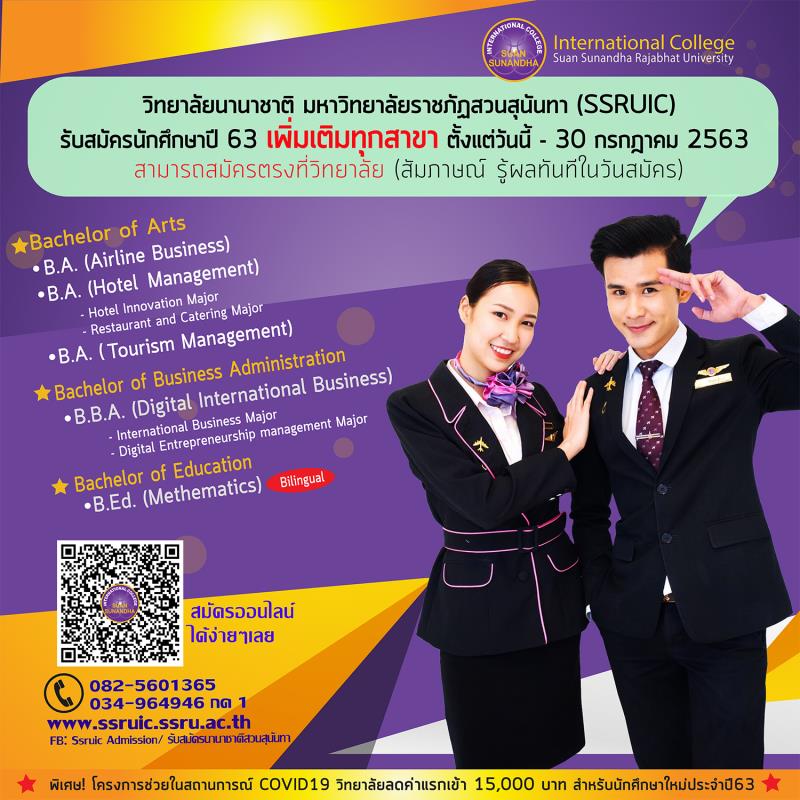 EZ Webmaster June 24, 2020 EZ Webmaster June 24, 2020 ข่าวดี! วิทยาลัยนานาชาติ ม.สวนสุนันทา รับนักศึกษาใหม่ “เพิ่มเติม” ปี 63 ในทุกสาขา สมัครได้ตั้งแต่วันนี้ – 31 กรกฎาคม 2563 ข่าวดี!? วิทยาลัยนานาชาติ มหาวิทยาลัยราชภัฏสวนสุนันทา รับนักศึกษาใหม่ “เพิ่มเติม” ปี 63 ในทุกสาขา สมัครได้ตั้งแต่วันนี้ – 31 กรกฎาคม 2563 และ พิเศษ! ? โครงการช่วยเหลือช่วงสภาวการณ์ COVID19 นี้ เพื่อช่วยเหลือด้านเศรษฐกิจ ลดค่าแรกเข้าทันที 15,000 บาท? (เฉพาะนักศึกษาใหม่ปี 63 จากเดิมค่าแรกเข้า จาก 20,000 บาท เหลือค่าแรกเข้าเพียง 5,000 บาท เท่านั้น) สามารถมาสมัครได้ด้วยตัวเอง / รู้ผลทันที ได้ที่ ฝ่ายประชาสัมพันธ์และการรับสมัคร วิทยาลัยนานาชาติ มหาวิทยาลัยราชภัฏสวนสุนันทา (SSRUIC) หรือ โทร. 082-5601365 หรือ 034-965946 กด 1 ง่ายที่สุด…สมัครออนไลน์เข้ามาได้ที่ https://docs.google.com/forms/d/e/1FAIpQLScS9Ll6levKRiNgygwX8N2iPvKmkR6SvYm5GVRgxKn1cGaVkQ/viewform หรือ คิวอาร์โค้ดในภาพนี้ มาเป็นครอบครัว #SSRUIC กันนะคะ