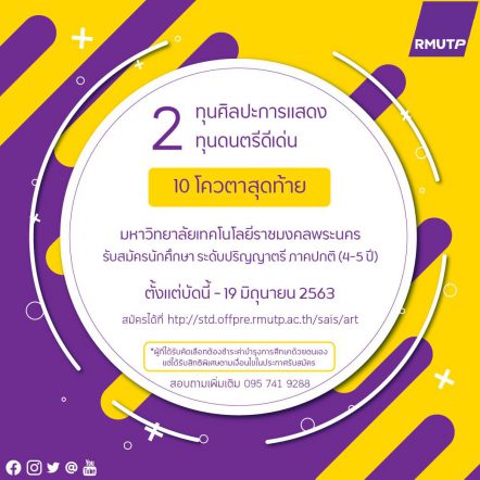 EZ Webmaster June 16, 2020 มทร.พระนคร รับนักศึกษา TCAS 5 พร้อมอัดฉีดทุนเรียนฟรี ผู้มีความสามารถด้านศิลปะการแสดง -ดนตรี EZ Webmaster June 16, 2020 รศ.สุภัทรา โกไศยกานนท์ รักษาราชการแทนอธิการบดี มหาวิทยาลัยเทคโนโลยีราชมงคลพระนคร เปิดเผยว่า มหาวิทยาลัยกำลังเปิดรับนักศึกษาระดับชั้นมัธยมศึกษาปีที่ 6 เข้าศึกษาต่อระดับปริญญาตรี ระบบทีแคส (TCAS) รอบที่ 5 การรับตรงอิสระ ประจำปีการศึกษา 2563 เป็นรอบสุดท้าย เพื่อเข้าศึกษาต่อใน 8 คณะ ได้แก่ คณะศิลปศาสตร์ คณะวิทยาศาสตร์และเทคโนโลยี คณะบริหารธุรกิจ คณะวิศวกรรมศาสตร์ คณะอุตสาหกรรมสิ่งทอและออกแบบแฟชั่น คณะเทคโนโลยีคหกรรมศาสตร์ คณะเทคโนโลยีสื่อสารมวลชน และคณะสถาปัตยกรรมศาสตร์และการออกแบบ เปิดรับสมัครตั้งแต่บัดนี้ – วันที่ 22… Continue Reading