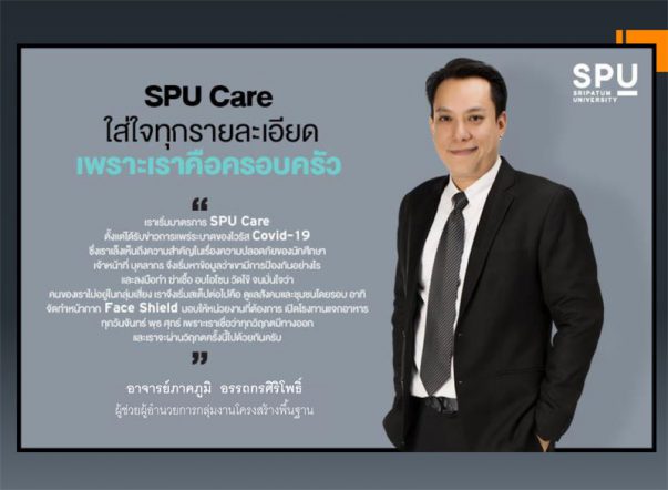 EZ Webmaster June 5, 2020 พาไป! เปิดมาตรการ SPU Care สู้ภัย COVID -19 EZ Webmaster June 5, 2020 จากสถานการณ์การแพร่ระบาดของเชื้อไวรัส COVID-19 ที่ส่งผลกระทบเป็นวงกว้าง ทำให้ทั่วโลกเกิดวิกฤตครั้งใหญ่ หลายธุรกิจต้องหยุดนิ่ง หลายครอบครัวต้องขาดรายได้ มหาวิทยาลัยศรีปทุม ก็เป็นหนึ่งในกลุ่มที่ได้รับผลกระทบ ทั้งนี้ ดร.รัชนีพร พุคยาภรณ์ พุกกะมาน อธิการบดีมหาวิทยาลัยศรีปทุม ได้เล็งเห็นถึงความเดือนร้อนของทุกคน จึงริเริ่มมาตรการ SPU Care ที่ดูแลนักศึกษา บุคลากร และ เจ้าหน้าที่ รวมถึงชุมชนโดยรอบ ภายใต้การกำกับดูแลของ อาจารย์ภาคภูมิ อรรถกรศิริโพธิ์ ผู้ช่วยผู้อำนวยการ กลุ่มงานโครงสร้างพื้นฐาน ที่ใส่ใจทุกรายละเอียด เพราะทุกคนคือครอบครัวของ SPU อาจารย์ภาคภูมิ เล่าว่า SPUของเราได้เริ่มมาตรการ SPU Care ตั้งแต่ได้รับข่าวว่า เกิดการแพร่ระบาดของเชื้อไวรัส Covid-19 ประมาณกลางเดือนธันวาคม ซึ่งเราเล็งเห็นถึงความสำคัญในเรื่องความปลอดภัยของนักศึกษา เจ้าหน้าที่ บุคลากร จึงเริ่มหาข้อมูลว่า ที่ประเทศจีนว่าเขามีการป้องกันอย่างไร ต้องเตรียมอะไรบ้าง… Continue Reading