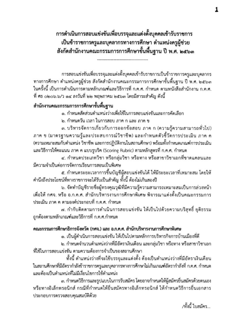EZ Webmaster July 8, 2020 EZ Webmaster July 8, 2020 ดาวน์โหลดเลย “คู่มือการดำเนินการสอบแข่งขัน เพื่อบรรจุและแต่งตั้งบุคคลเข้ารับราชการฯ ตำแหน่งครูผู้ช่วย สังกัด สพฐ. ปี 2563” ตามที่ ก.ค.ศ. ได้กำหนดหลักเกณฑ์และวิธีการสอบแข่งขันเพื่อบรรจุและแต่งตั้งบุคคลเข้ารับราชการเป็นข้าราชการครูและบุคลากรทางการศึกษา ตำแหน่งครูผู้ช่วย ตามหนังสือสำนักงาน ก.ค.ศ. ที่ ศธ ๐๒๐๖.๖/๑๔ ลงวันที่ 22 พฤษภาคม 2563 นั้น ทางสำนักงานคณะกรรมการการศึกษาขั้นพื้นฐานจึงจัดทำ “คู่มือการดำเนินการสอบแข่งขัน เพื่อบรรจุและแต่งตั้งบุคคลเข้ารับราชการฯ ตำแหน่งครูผู้ช่วย สังกัด สพฐ. ปี 2563” เพื่อให้ดำเนินการสอบแข่งขันและแต่งตั้งบุคคลในตำแหน่งครูผู้ช่วย เป็นไปด้วยความเรียบร้อย ถูกต้องตามหลักเกณฑ์ที่ทาง ก.ค.ศ. กำหนด โดยคู่มือเล่มนี้จะมีเนื้อหาตั้งแต่วิธีการดำเนินการสอบแข่งขันและแต่งตั้งในตำแหน่งครูผู้ช่วย สังกัดสพฐ. ปี 2563 มาตรฐาน ระเบียบการ เอกสารที่เกี่ยวข้อง หลักเกณฑ์และวิธีการสอบแข่งขัน รวมไปถึงข้อแนะนำในการสอบปฏิบัติสำหรับการสอบแข่งขันเพื่อบรรจุและแต่งตั้ง เป็นต้น ตัวอย่างเนื้อหา สำหรับผู้ที่สนใจสมัครสอบสามารถเข้าไปอ่านรายละเอียดเพิ่มเติม หรือดาวน์โหลดคู่มือการดำเนินการสอบแข่งขัน เพื่อบรรจุและแต่งตั้งบุคคลเข้ารับราชการฯ ตำแหน่งครูผู้ช่วย สังกัด สพฐ. ปี 2563 ได้ที่ >>> https://drive.google.com/file/d/1ZB-71dxPS17GK8e-er235a2RP1QhXiFe/view?fbclid=IwAR1B3Dy_kbhxXuTzZ3EBZTYbeU1RpPCBjdfEWmYjcydhM04987gKMxQGhpA ขอบคุณข้อมูลจาก -สำนักงานคณะกรรมการการศึกษาขั้นพื้นฐาน