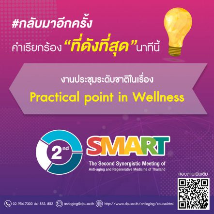 EZ Webmaster July 2, 2020 สายสุขภาพห้ามพลาด!! DPU ชวนร่วมงานประชุมระดับชาติ ครั้งที่ 2“Practical Point in Wellness” EZ Webmaster July 2, 2020 สาขาวิชาการชะลอวัยและฟื้นฟูสุขภาพ วิทยาลัยการแพทย์บูรณาการ มหาวิทยาลัยธุรกิจบัณฑิตย์ ชวนนักวิชาการ นักวิจัย และผู้สนใจด้านสุขภาพ ร่วมงานประชุมระดับชาติ ครั้งที่ 2 SMART: The Second Synergistic Meeting of Anti-Aging and Regenerative Medicine of Thailand ในหัวข้อ “Practical Point in Wellness” มาอัพเดทความรู้ใหม่ที่ไม่เหมือนใคร พร้อมความรู้พื้นฐานแนวคิด Wellness อย่างครอบคลุมทุกแขนง ทั้งยังได้ไกด์ไลน์การทำงาน ในสายงาน Wellness อย่างมืออาชีพ นอกจากนี้ยังได้แลกเปลี่ยนประสบการณ์การทำงาน กับผู้เชี่ยวชาญด้าน Wellness จัดขึ้นระหว่าง วันที่ 11-12 กรกฎาคม 2563… Continue Reading