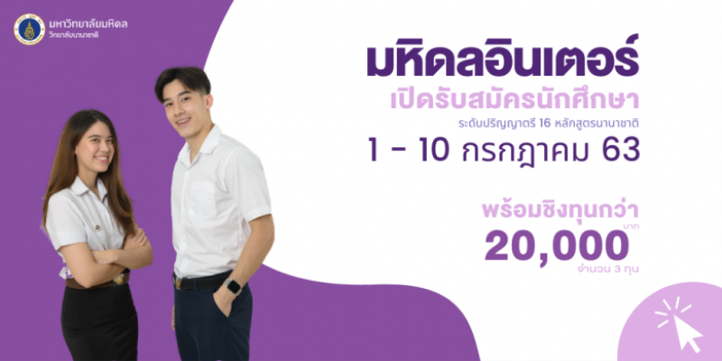 tui sakrapee July 1, 2020 มหิดลอินเตอร์ เปิดรับนักศึกษาใหม่ระดับปริญญาตรี 16 หลักสูตร tui sakrapee July 1, 2020 วิทยาลัยนานาชาติ มหาวิทยาลัยมหิดล (มหิดลอินเตอร์) เปิดรับสมัครนักศึกษาใหม่ระดับปริญญาตรี หลักสูตรนานาชาติ รอบที่ 2 ประจำปีการศึกษา 2563-2564 จำนวน 16 หลักสูตร ระหว่างวันที่ 1 -10 กรกฎาคม 2563 โดยมีรายละเอียดดังนี้ หลักสูตรนิเทศศาสตรบัณฑิต (BACHELOR OF COMMUNICATION ARTS : B.COM.ARTS) – สาขาวิชาสื่อและการสื่อสาร (Media and Communication) หลักสูตรศิลปกรรมศาสตรบัณฑิต (BACHELOR OF… Continue Reading