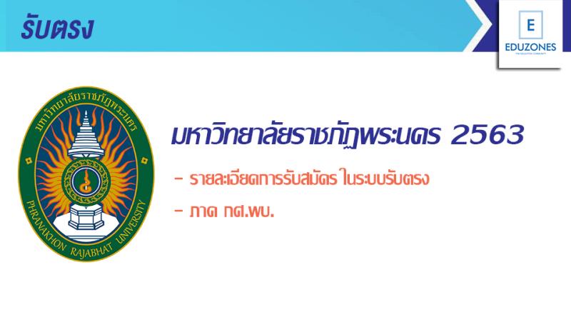 EZ Webmaster August 10, 2020 EZ Webmaster August 10, 2020 #รับตรง63 ม.ราชภัฏพระนคร ภาค กศ.พบ. เปิดรับสมัครรับตรง ตั้งแต่วันที่ 20 ก.ค.- 11 ต.ค. 2563 มหาวิทยาลัยราชภัฏพระนคร เปิดรับสมัครนักศึกษาระดับปริญญาตรี ภาค กศ.พบ. (เรียนเฉพาะวันเสาร์-อาทิตย์) ประจำปีการศึกษา 2563 ตั้งแต่วันที่ 20 กรกฎาคม – 11 ตุลาคม 2563 โดยเปิดรับสมัครผ่านเว็บไซต์ https://admission.pnru.ac.th/home/normal/TH คณะที่เปิดรับสมัคร -คณะเทคโนโลยีอุตสาหกรรม -คณะมนุษยศาสตร์และสังคมศาสตร์ -คณะวิทยาศาสตร์และเทคโนโลยี -คณะวิทยาการจัดการ กำหนดการ -เปิดสมัครผ่านเว็บไซต์ ตั้งแต่วันที่ 20 กรกฎาคม – 11 ตุลาคม 2563 -ประกาศรายชื่อผู้มีสิทธิ์สอบสัมภาษณ์ วันที่ 16 ตุลาคม 2563 -สอบสัมภาษณ์ วันที่ 24 ตุลาคม 2563 -ประกาศรายชื่อผู้มีสิทธิ์เข้าศึกษา วันที่ 27 ตุลาคม 2563 คุณสมบัติของผู้สมัคร -เป็นผู้สำเร็จการศึกษาชั้นมัธยมศึกษาปีที่ 6 หรือ เทียบเท่า -เป็นผู้มีวุฒิการศึกษาระดับ ปวช. / ปวส. เฉพาะสาขาที่กำหนด -ไม่มีการกำหนด GPAX ขั้นต่ำ -ไม่มีการใช้ผลคะแนน ช่องทางการรับสมัคร -เปิดรับสมัครทางเว็บไซต์ https://admission.pnru.ac.th/home/normal/TH เกณฑ์การพิจารณารับเข้า -การสอบสัมภาษณ์ สำหรับผู้ที่สนใจสมัครเข้าศึกษาต่อสามารถเข้าไปศึกษาข้อมูลเพิ่มเติม ได้ที่ >>> https://admission.pnru.ac.th/home/info/open/32 หรือทางเว็บไซต์ https://admission.pnru.ac.th ขอบคุณข้อมูลจาก -เว็บไซต์มหาวิทยาลัยราชภัฏพระนคร