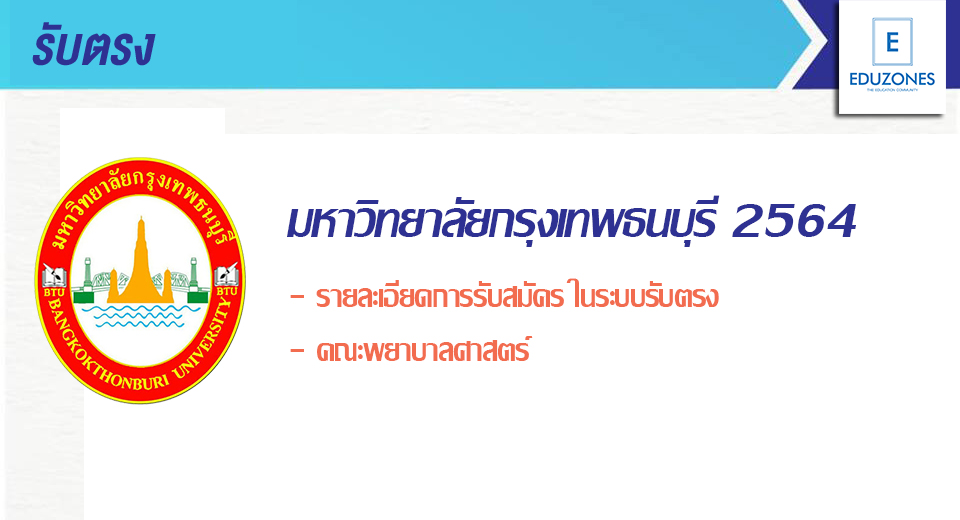 EZ Webmaster August 17, 2020 EZ Webmaster August 17, 2020 #รับตรง64 คณะพยาบาลศาสตร์ ม.กรุงเทพธนบุรี เปิดรับสมัครนศ.ป.ตรี ตั้งแต่วันที่ 1 ส.ค.- 30 ก.ย. 63 คณะพยาบาลศาสตร์ มหาวิทยาลัยกรุงเทพธนบุรี เปิดรับสมัครนักเรียนมัธยมศึกษาตอนปลายเข้าศึกษาต่อระดับปริญญาตรี รอบรับตรง ปีการศึกษา 2564 ตั้งแต่วันที่ 1 สิงหาคม – 30 กันยายน 2563 กำหนดการ -เปิดรับสมัครตั้งแต่วันที่ 1 สิงหาคม – 30 กันยายน 2563 -สอบรอบที่ 1 วันที่ 24 ตุลาคม 2563 -สอบสัมภาษณ์ วันที่ 24 ตุลาคม 2563 -ประกาศรายชื่อผู้มีสิทธิ์เข้าศึกษา วันที่ 1 พฤศจิกายน 2563 คุณสมบัติของผู้สมัคร -เป็นผู้ที่จบมัธยมศึกษาระดับชั้นมัธยมศึกษาตอนปลาย -เป็นผู้มีเกรดเฉลี่ย 2.00 ขึ้นไป -เป็นผู้มีน้ำหนักไม่น้อยกว่า 40 กก.และไม่เกิน 70 กก. ช่องทางการสมัคร -เปิดรับสมัครออนไลน์ทางเว็บไซต์ https://bkkthon.ac.th/home/th/admission/register หลักเกณฑ์การพิจารณารับเข้า -การสอบข้อเขียน วิชาภาษาไทย ภาษาอังกฤษ วิทยาศาสตร์ คณิตศาสตร์ -การสอบสัมภาษณ์ และตรวจร่างกาย สำหรับผู้ที่สนใจสมัครเรียนสามารถเข้าไปศึกษาข้อมูลเพิ่มเติม ได้ที่ https://bkkthon.ac.th/home/th/article/post-1613 หรือ โทร. 02 800 6800-5 (ฝ่ายประชาสัมพันธ์) ขอบคุณข้อมูลจาก -เว็บไซต์มหาวิทยาลัยกรุงเทพธนบุรี