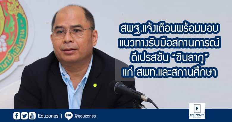 EZ Webmaster August 3, 2020 สพฐ. แจ้งเตือนพร้อมมอบแนวทางรับมือสถานการณ์ดีเปรสชัน “ซินลากู” แก่ สพท. และสถานศึกษา EZ Webmaster August 3, 2020 เมื่อวันที่ 3 สิงหาคม 2563 ที่ผ่านมา รองเลขาธิการคณะกรรมการการศึกษาขั้นพื้นฐาน นายสนิท แย้มเกษร เปิดเผยว่า ทางสำนักงานคณะกรรมการการศึกษาขั้นพื้นฐาน (สพฐ.) ได้มีหนังสือแจ้งถึงผู้อำนวยการสำนักงานเขตพื้นที่การศึกษา (ผอ.สพท.) ทุกเขต เรื่อง แจ้งเตือนสถานการณ์พายุดีเปรสชัน ซินลากู (SINLAKU) โดยมีรายละเอียด ดังนี้ ด้วยกรมอุตุนิยมวิทยา มีประกาศ ฉบับที่ 10 (150/2563) ประกาศ ณ วันที่ 3 สิงหาคม… Continue Reading