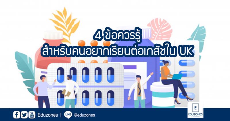 EZ Webmaster September 18, 2020 EZ Webmaster September 18, 2020 4 ข้อควรรู้สำหรับคนอยากเรียนต่อเภสัชใน UK คณะเภสัชศาสตร์เป็นอีกคณะที่มีนักเรียนไทยหลายคนอยากไปเรียนต่อ โดยเฉพาะที่สหราชอาณาจักรที่มีหลักสูตรด้านเภสัชศาสตร์ที่ค่อยข้างมีชื่อเสียง วันนี้เราจึงมีข้อควรรู้สำหรับคนที่อยากไปเรียนต่อเภสัชศาสตร์ที่สหราชอาณาจักรมาฝากกันค่ะ หลักสูตรเภสัชศาสตร์ใน UK การเรียนต่อ เภสัชศาสตร์ (Pharmarcy) ในสหราชอาณาจักรนั้นจะเรียนทั้งหมด 4 ปีเต็ม โดยจะได้วุฒิ MPharm Pharmacy (Master of Pharmacy) โดยผู้ที่สนใจสามารถสมัครเรียนได้ด้วยโปรแกรม Foundation หรือ A-Level ได้ หรือใช้จะคะแนน International Baccalaureate และ คะแนน IELTS ก็ได้เช่นกัน อันดับมหาวิทยาลัย Top 10 ทางด้านเภสัชศาสตร์ใน UK มหาวิทยาลัยที่มีชื่อเสียงในหลักสูตรด้านเภสัชศาสตร์มีด้วยกัน 10 อันดับ ดังนี้ -University of Liverpool -Ulster University -University of Bristol -University of Newcastle -University of Nottingham -Queen’s University, Belfast -Cardiff University -University of Lincoln -Keele University -University of Birmingham สาขาด้านเภสัชศาสตร์ที่น่าสนใจ หลักสูตรด้านเภสัชศาสตร์ที่สหราชอาณาจักรนั้น มีด้วยกันหลากหลายหลักสูตรที่น่าสนใจ อาทิ Pharmaceutical Science & drug discovery ที่ The University of Nottingham -สาขานี้จะศึกษาถึงกระบวนการค้นหายาใหม่ ๆ และการวิจัยและพัฒนายาใหม่ที่มีประสิทธิภาพและจำเพาะเจาะจงกับโรคมากกว่าเดิม โดยจะเป็นการนำความรู้เกี่ยวกับความสัมพันธ์เซลล์และการตอบสนองของอวัยวะต่าง ๆ มาใช้พัฒนายา นอกจากนี้ยังมีการศึกษาวิธีการรักษาโรคและความผิดปกติต่าง ๆ ในมนุษย์อีกด้วย คอร์สนี้ได้รับการรับรองจาก Royal Society of Chemistry Industrial Pharmacy ที่ Queen’s university Belfast -สาขานี้จะศึกษาถึงตำรับยาเคมีและยาชีววัตถุ เทคโนโลยีที่ใช้ผลิต การควบคุมคุณภาพการผลิตเพื่อให้ได้ผลิตภัณฑ์ที่มีคุณภาพ นอกจากนั้นยังได้เรียนเกี่ยวกับการจัดการข้อมูลที่ได้จากการวิจัยและจากอุตสาหกรรมยาอีกด้วย Advanced Clinical Pharmacy ที่ University of Hertfordshire -สาขานี้จะเรียนรู้ด้านเภสัชกรรมคลินิก ซึ่งคือวิชาการและทักษะทำงานในโรงพยาบาลร่วมกับสหวิชาชีพ เช่น แพทย์ พยาบาล นักเทคนิคการแพทย์ โดยจะเน้นการฝึกปฏิบัติเป็นหลักทั้งระหว่างเรียนและหลังจากเรียนจบ Pharmaceutical Biotechnology ที่ De Montfort University -สาขานี้จะศึกษาเฉพาะยาที่มาจากเทคโนโลยีทางชีวภาพ นอกจากนี้ ยังมีรายวิชาเกี่ยวกับการสร้างนวัตกรรมใหม่ ๆ และการสร้างธุรกิจของตัวเอง สาขาจึงเป็นสาขาที่จได้ความรู้ทั้งด้านวิทยาศาสตร์และธุรกิจไปพร้อมๆ กัน เส้นทางอาชีพทางเภสัชศาสตร์ใน UK หลังเรียนจบทางด้านเภสัชศาสตร์นั้นมีอาชีพที่บัณฑิตที่จบหลักสูตรเภสัชนิยมด้วยกันหลายอาชีพ ดังนี้ ผู้ช่วยเภสัชกร เป็นผู้ปฏิบัติหน้าที่ผู้ช่วยเภสัชกรหรือทำงานร่วมกับผู้เชี่ยวชาญโดยรับผิดชอบงานหล