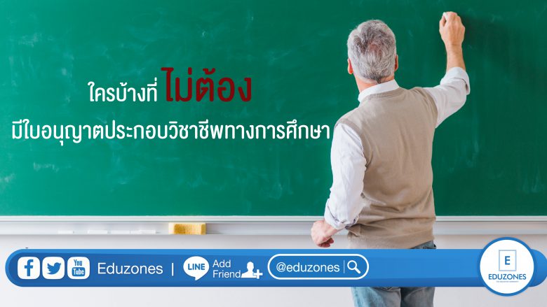 EZ Webmaster October 2, 2020 ใครบ้างที่ไม่ต้องมีใบอนุญาตประกอบวิชาชีพทางการศึกษา EZ Webmaster October 2, 2020 ตามพระราชบัญญัติสภาครูและบุคลากรทางการศึกษา พ.ศ. 2546 มาตรา 43 กำหนดให้วิชาชีพครู ผู้บริหารสถานศึกษา และ ผู้บริหารการศึกษา เป็นวิชาชีพควบคุมตามพระราชบัญญัตินี้ ตามพระราชบัญญัติสภาครูและบุคลากรทางการศึกษา พ.ศ. 2546 มาตรา 43 กำหนดให้วิชาชีพครู ผู้บริหารสถานศึกษา และ ผู้บริหารการศึกษา เป็นวิชาชีพควบคุมตามพระราชบัญญัตินี้ การกำหนดวิชาชีพควบคุมอื่นให้เป็นไปตามที่กำหนด ในกฎกระทรวง ห้ามมิให้ผู้ใดประกอบวิชาชีพควบคุม โดยไม่ได้รับ ใบอนุญาตประกอบวิชาชีพ เว้นแต่กรณีอย่างใดอย่างหนึ่ง ดังต่อไปนี้ ผู้ที่เข้ามาให้ความรู้แก่ผู้เรียนในสถานศึกษา เป็นครั้งคราวในฐานะวิทยากรพิเศษทางการศึกษา ผู้ที่ไม่ได้ประกอบวิชาชีพหลักทางด้าน การเรียนการสอน แต่ในบางครั้งต้องทำหน้าที่สอนด้วย… Continue Reading